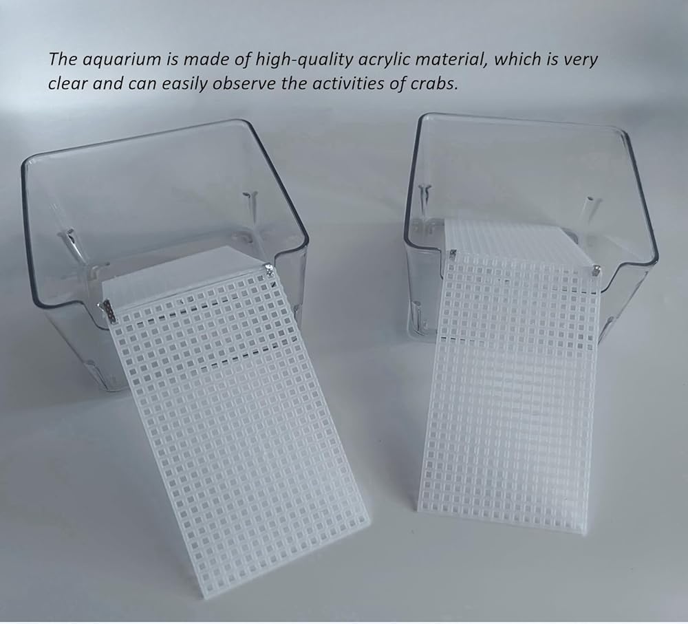 High-quality acrylic material : The aquarium is made of high-quality acrylic material, which is very clear and can easily observe the activities of crabs.