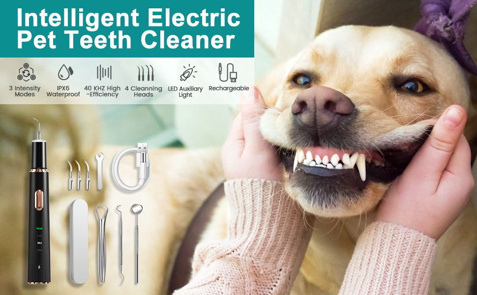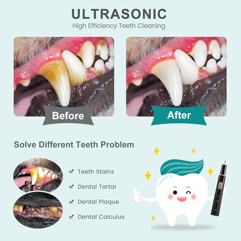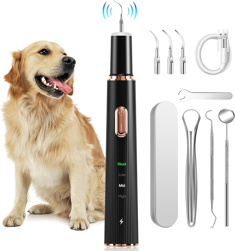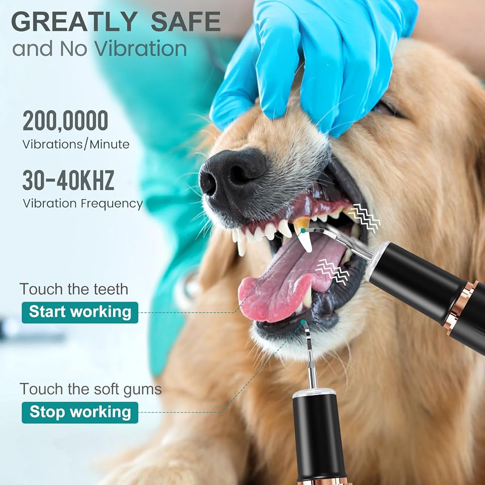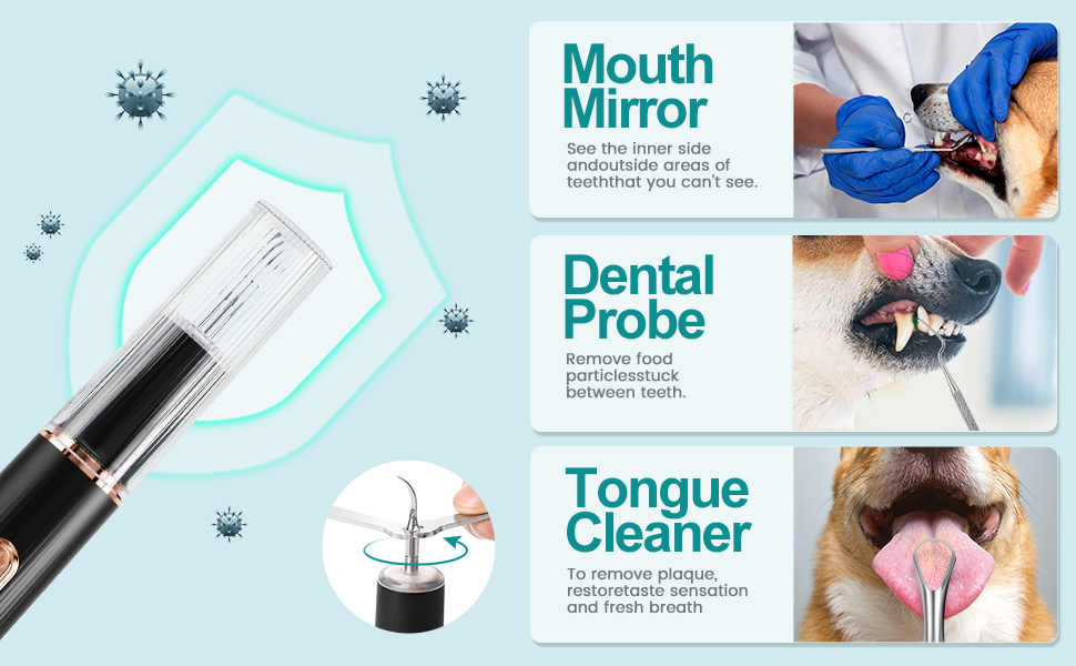 [احترافية وإضاءة LED]: مجموعة تنظيف الأسنان الاحترافية هذه هي أداة فعالة وعملية للعناية بالفم لحيوانك الأليف، يمكن أن يساعدك ضوء LED المدمج على رؤية بقع الأسنان بوضوح، كما توفر فرشاة أسنان الكلاب بالموجات فوق الصوتية الخاصة بنا لأصحاب الحيوانات الأليفة تجربة فعالة ومريحة. حل لمنع وعلاج تراكم الجير ومشاكل الأسنان الأخرى. من المهم التأكد من أن أسنان ولثة حيوانك الأليف تظل صحية ونظيفة.
