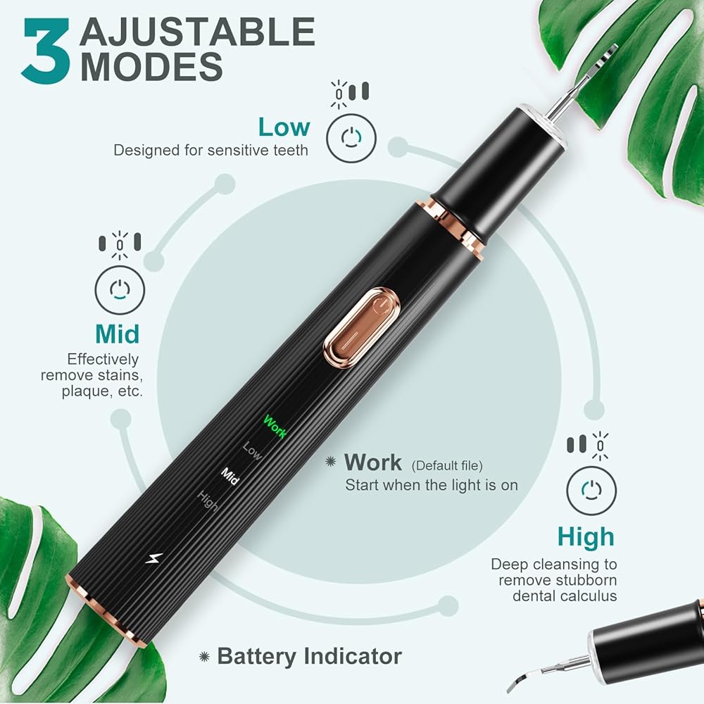 【3 أوضاع للتنظيف】: تحتوي مجموعة تنظيف أسنان الكلاب على 3 أوضاع عمل: ناعمة ومتوسطة وعالية. يمكنك القيام بذلك وفقًا للوضع الفعلي لأسنان حيوانك الأليف، تكنولوجيا الموجات فوق الصوتية آمنة جدًا، ولن يسبب استخدام العملية أي ألم، في المرة الأولى التي تستخدم فيها منظف الأسنان، يرجى اختيار الوضع الناعم.
