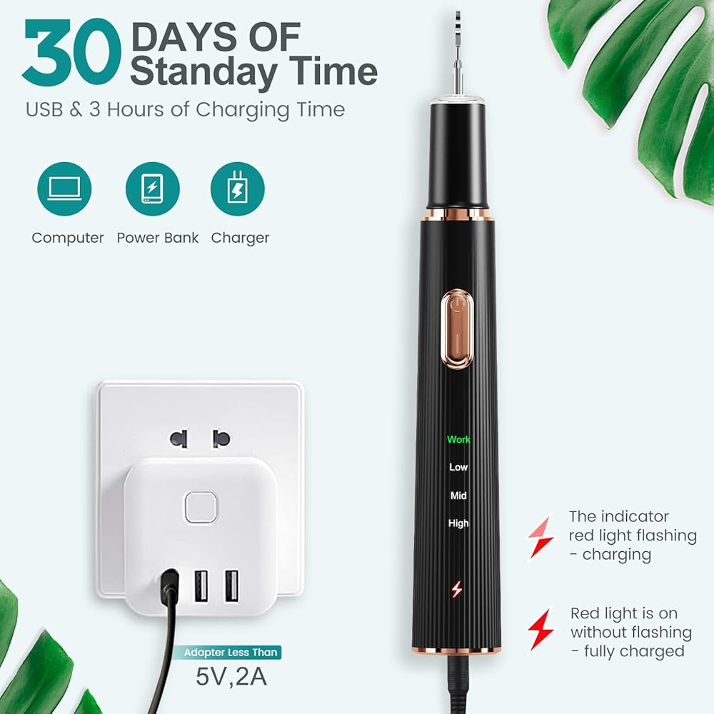 【خدمة USB قابلة لإعادة الشحن وما بعد البيع】أدوات طب أسنان الكلاب مع بطارية ليثيوم قوية وبيئية، مشحونة بالكامل تحتاج إلى 2-3 ساعات. يتم تشغيله بواسطة USB (لا يزيد عن 5 فولت، 1 أمبير) ويوصى بشحنه كل شهرين على الأقل. إذا كانت هناك أي مشكلة مع مزيل البلاك الكهربائي، فلا تتردد في الاتصال بنا - خدمة ما بعد البيع لمدة 12 شهرًا.