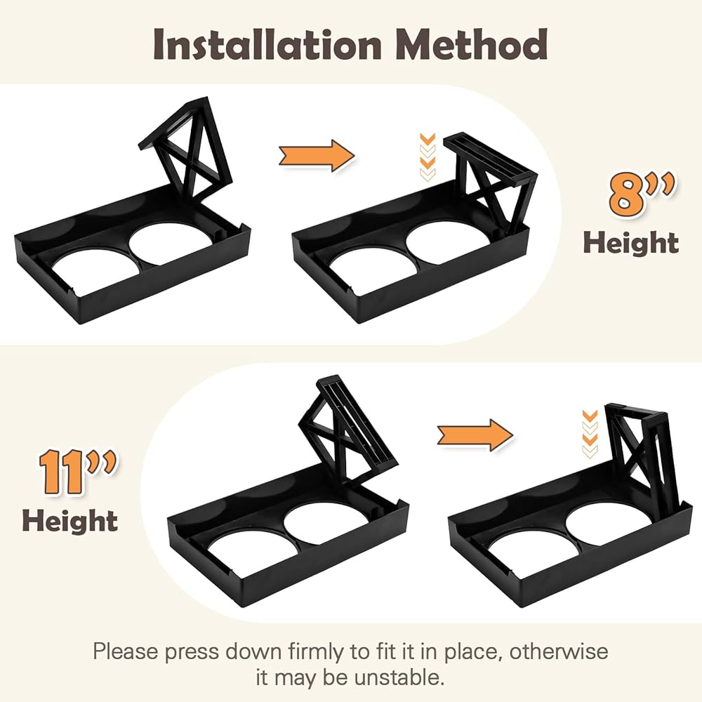 【Durable & Easy to Clean】elevated dog bowls is made of high-quality ABS material, durable and non-toxic for your pets. this double dog bowl stand can be clean with water directly. In addition, the foldable legs provide easy storage and portability.