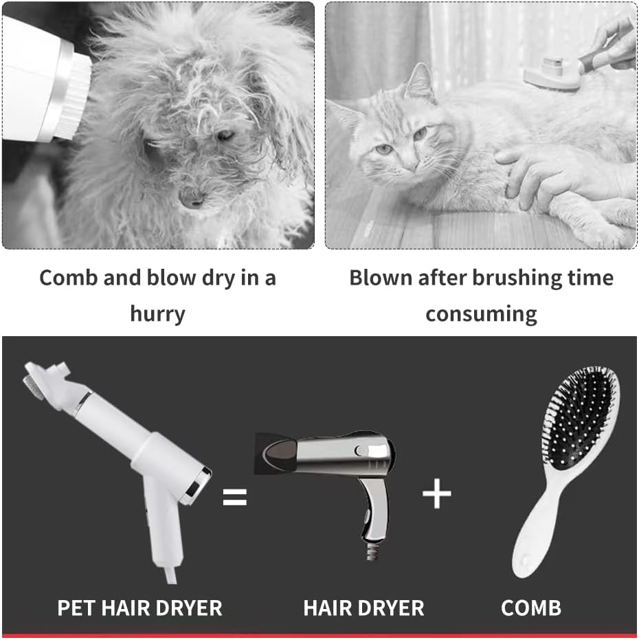 ♥ 【مجفف شعر الحيوانات الأليفة 2 في 1 وفرشاة ناعمة قابلة للفصل】تم تصميم هذا المجفف 2 في 1 للحيوانات الأليفة مع مجفف شعر قوي وفرشاة ناعمة قابلة للفصل يمكنها توليد طريقتين لتدفق الهواء لاستخدام متعدد الوظائف. يساعدك ذلك بشكل أسهل. لتجفيف وتلبيس كلابك/قططك بعد الاستحمام، وتساعد الفرشاة الناعمة على إزالة التشابك والفراء السائب بسهولة، مما يجعل شعر الحيوانات الأليفة أنيقًا وجميلاً. مساعدة كبيرة كفرشاة مجفف للكلاب وفرش مجفف للقطط.