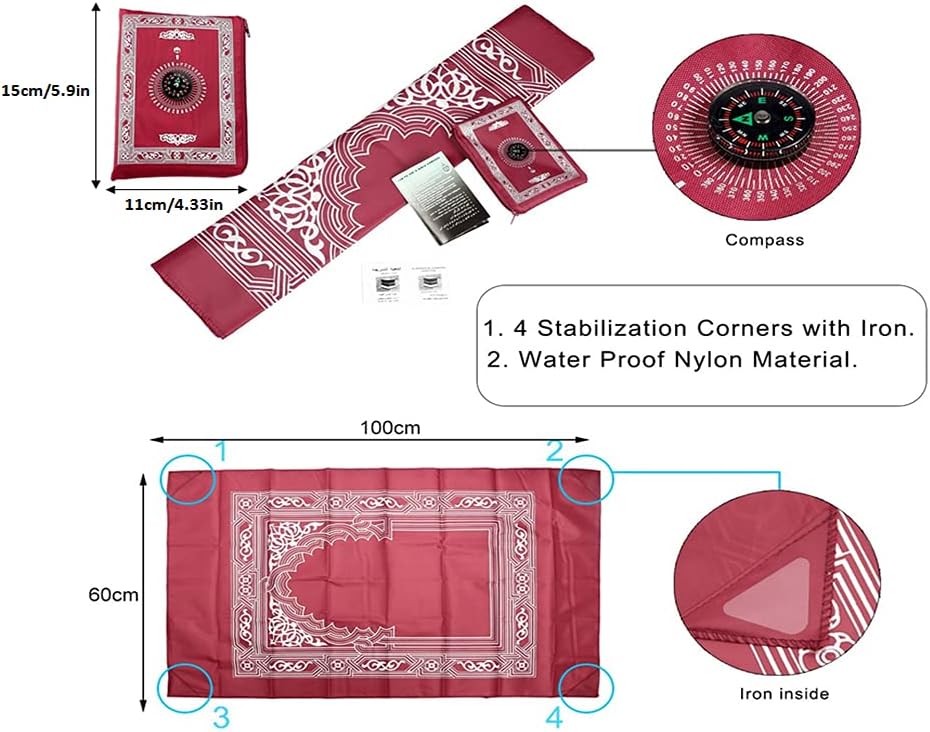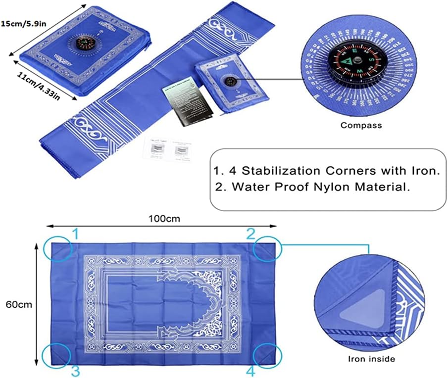 • تحتوي سجادة الصلاة على 4 زوايا تثبيت مع حديد: لتجنب هبوب الرياح.