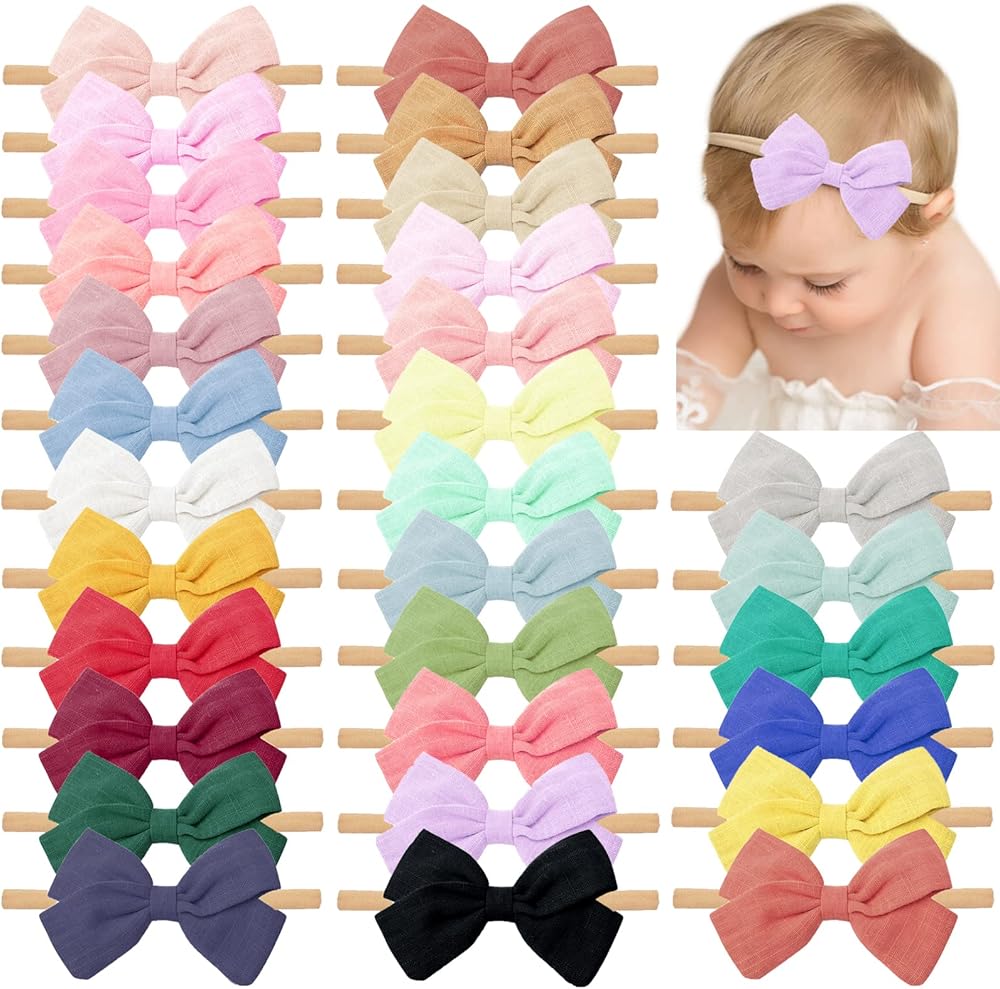 30 قطعة من ربطات الشعر المصنوعة من الكتان للفتيات الصغيرات من ربطات الشعر المرنة من النايلون إكسسوارات شعر للرضع والأطفال حديثي الولادة