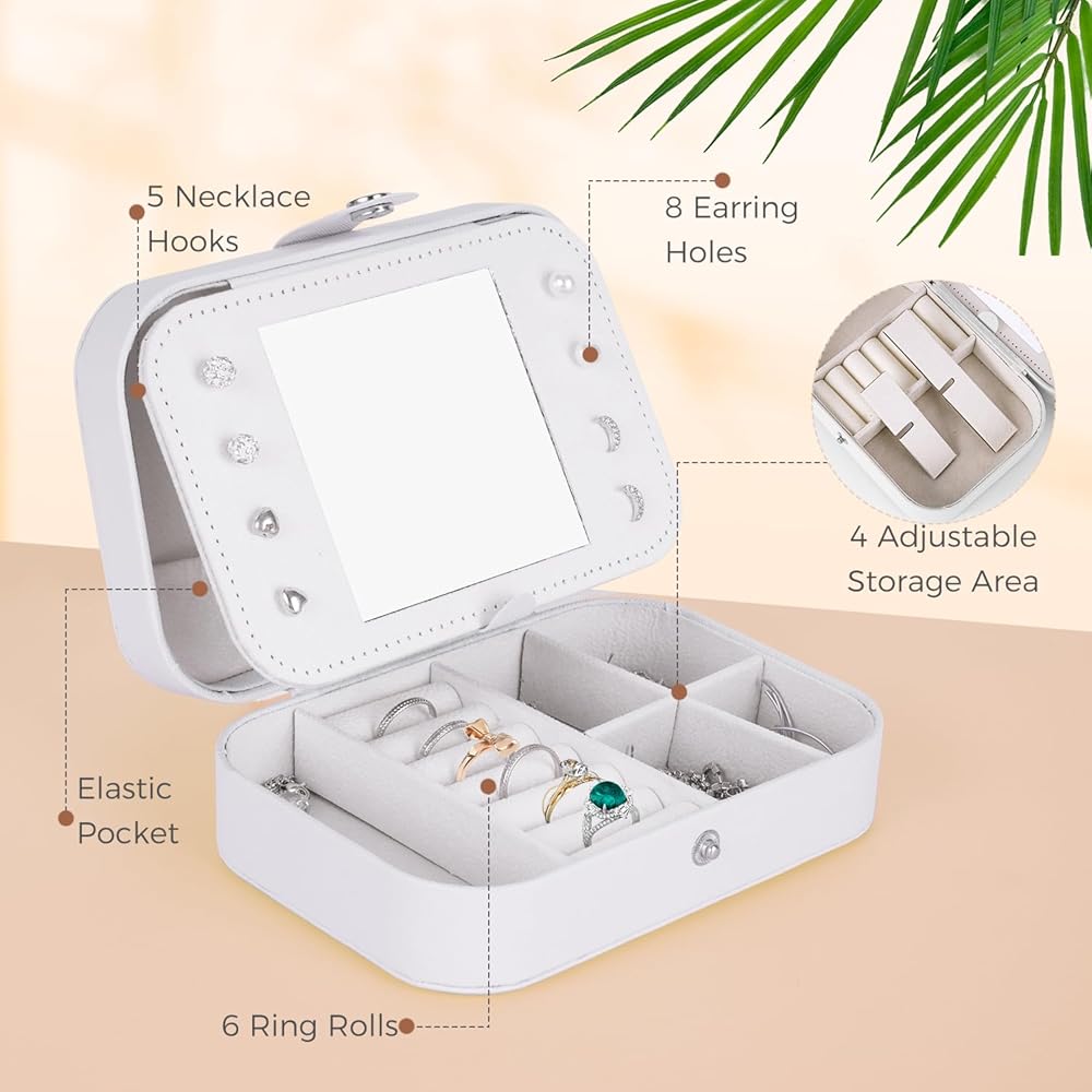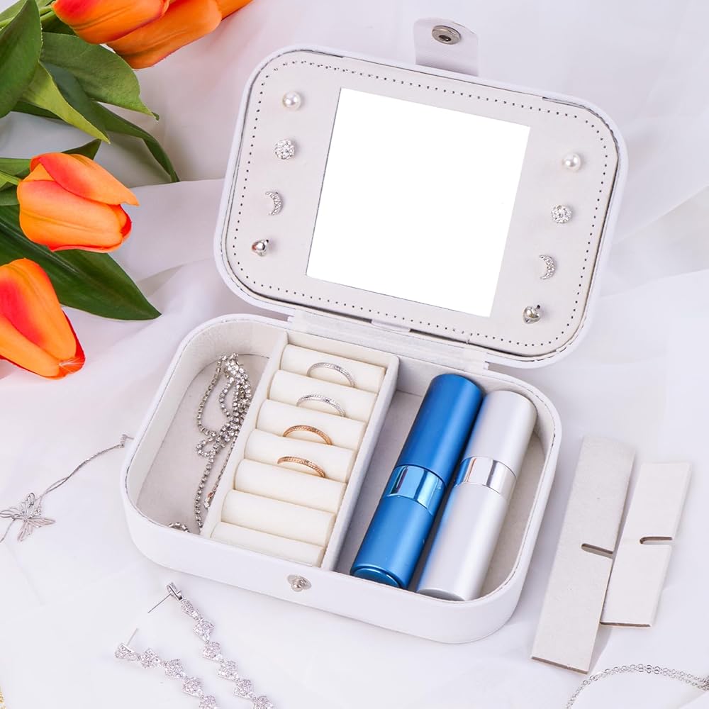 أساسيات السفر: يمكن لصندوق مجوهرات السفر هذا أن يحمل مجموعة متنوعة من المجوهرات في مناطق مختلفة ويأتي مع مرآة. يمكنك اصطحابها معك أثناء السفر أو أثناء التنقل. كن رائعًا وجميلًا أينما كنت وأينما كنت.