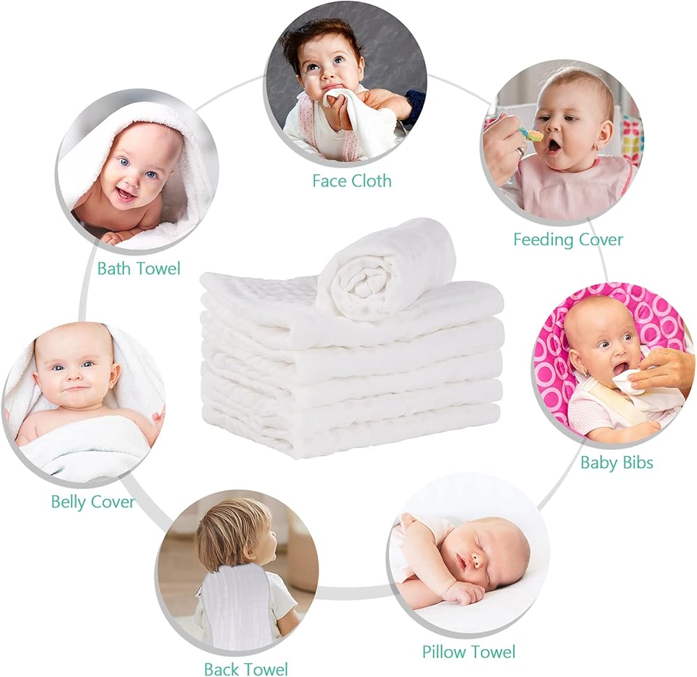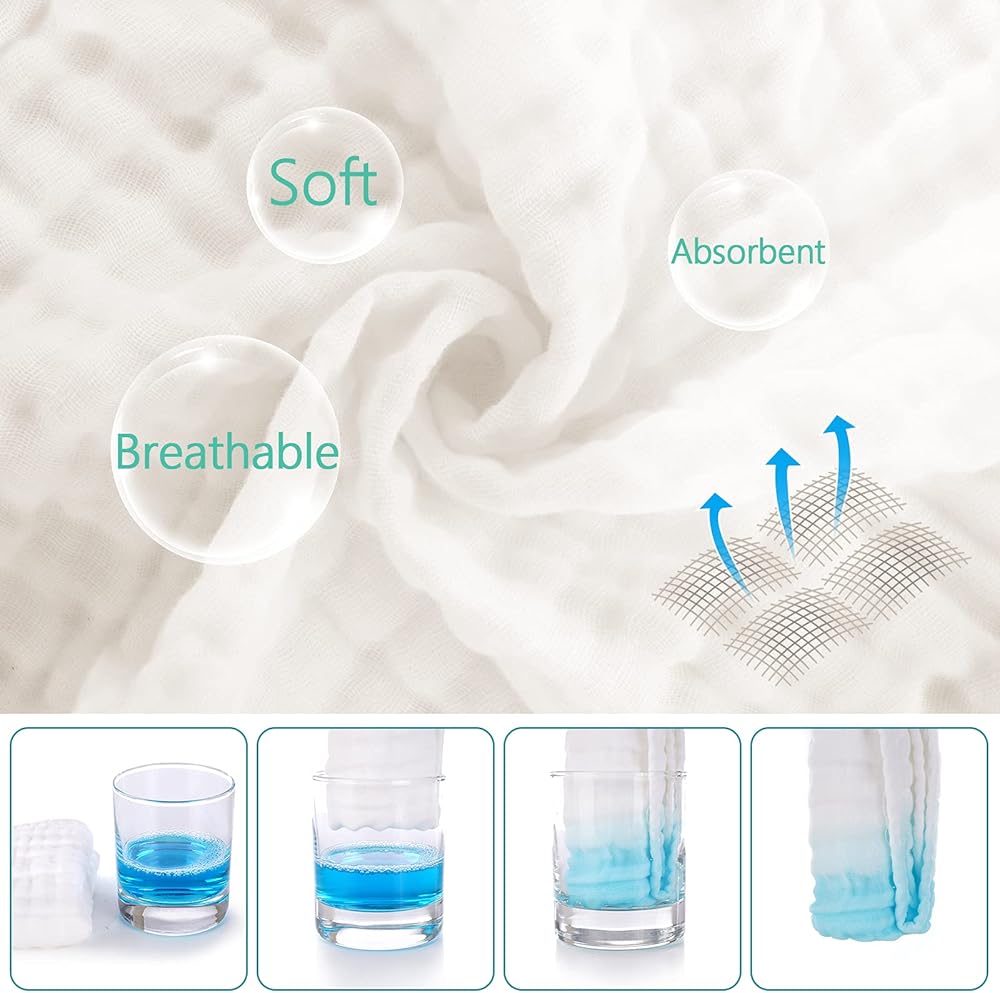 متعددة الاستخدامات وعملية: يمكن استخدام أقمشة الموسلين هذه كخرق للتجشؤ ومرايل الأطفال ومناشف مناشف وحتى حفاضات قماشية، مما يجعلها عنصرًا أساسيًا لأي والد. مناسبة لحديثي الولادة والأطفال الصغار والأطفال من جميع الأعمار.