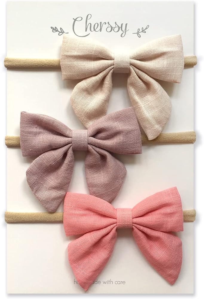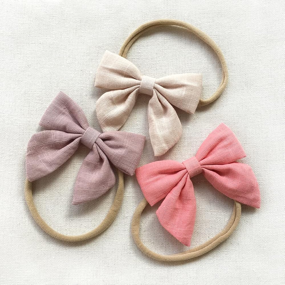 طراز كلاسيكي: 3 قطع من النمط الكلاسيكي، فيونكات بألوان نقية مصنوعة من أقمشة القطن والكتان مع شعور مريح بشكل طبيعي تشمل الألوان البينك والكاكي والكريمي!