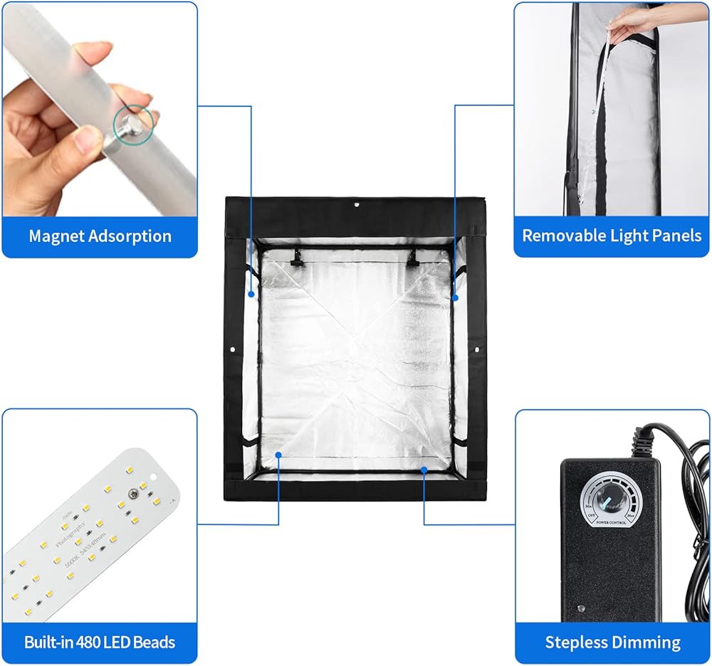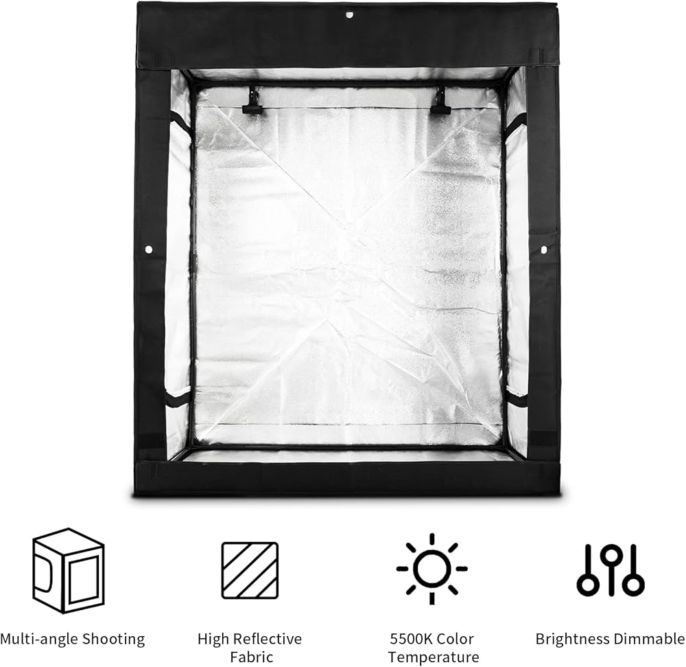 • صندوق إضاءة كبير للصور - 62 × 49 × 31 بوصة، مناسب لتصوير الأشياء الكبيرة، مثل الملابس والحقائب والدمى وغيرها.