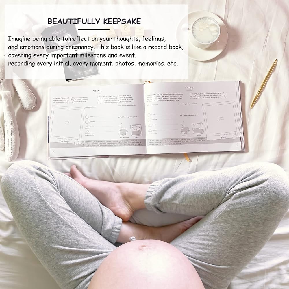تصميم بسيط عالي الجودة - كل دفتر ذكريات الحمل مجهز بصندوق أبيض جميل وقلم ذهبي، وهو مناسب لك لقضاء بضع دقائق كل يوم في كتابة أفكارك، وتسجيل حالتك وجمع دفتر الحمل الخاص بك في صناديق. غلاف دفتر اليوميات هو نمط مصمم بعناية، مع ذهبي راقي على الجانب وشريط لتتمكن من تسجيل وضع التصفح الخاص بك.