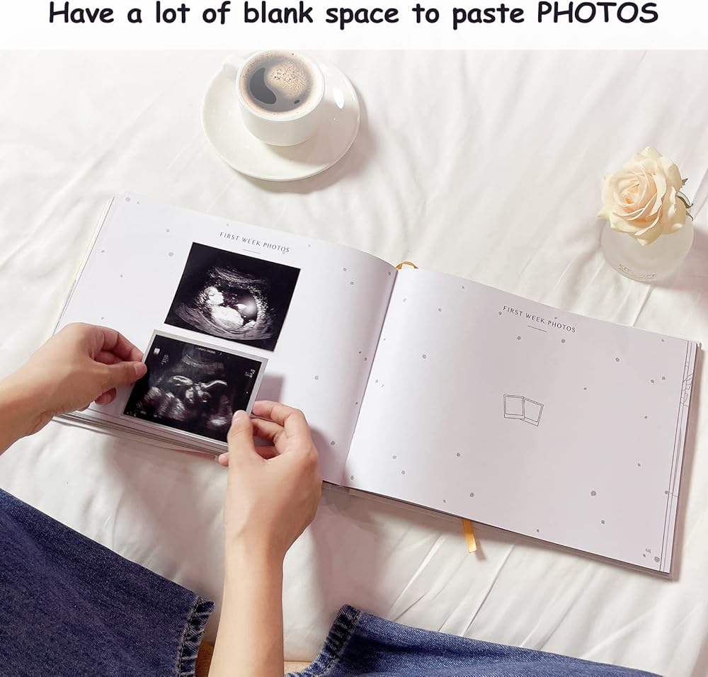 مساحة للكتاب والكتابة - يوفر دفتر قصاصات دفتر يوميات الحمل المكون من 245 صفحة مساحة كافية للملاحظات وسجلات ألبوم الصور، والتي يمكنها كتابة أفكارك ومشاعرك الأولية في كل مرحلة من مراحل الحمل. يمكنك لصق الصور المقطوعة والموجات فوق الصوتية في منطقة الصورة في المرحلة المبكرة من الولادة. بعد ولادة الطفل، يمكنك لصق صور الطفل في منطقة الصورة لتسجيل نمو الطفل وتغيراته في السنة الأولى.