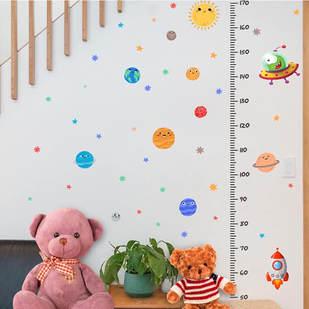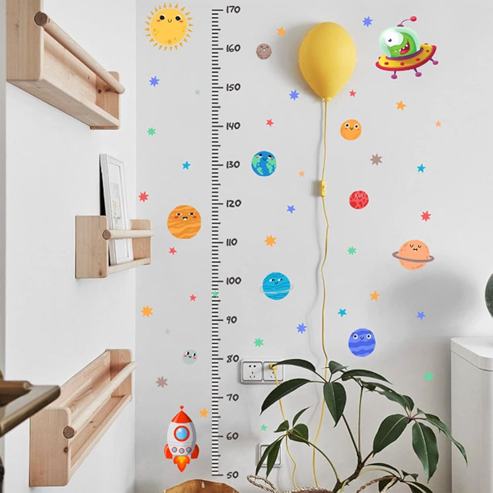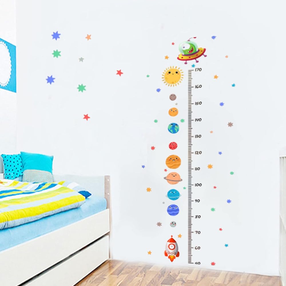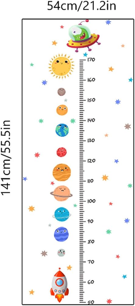 🚀استخدامات متعددة: يمكن وضعها على أي سطح أملس مثل الجدران والأبواب وغرف النوم وغرف المعيشة وغرف اللعب وديكورات المنزل. إنها ليست مجرد أداة ضرورية ومفيدة لقياس طول الأطفال، مما يساعد الأطفال على قلق أكثر بشأن طولهم، ولكن أيضًا طريقة ممتعة لتزيين الغرفة.