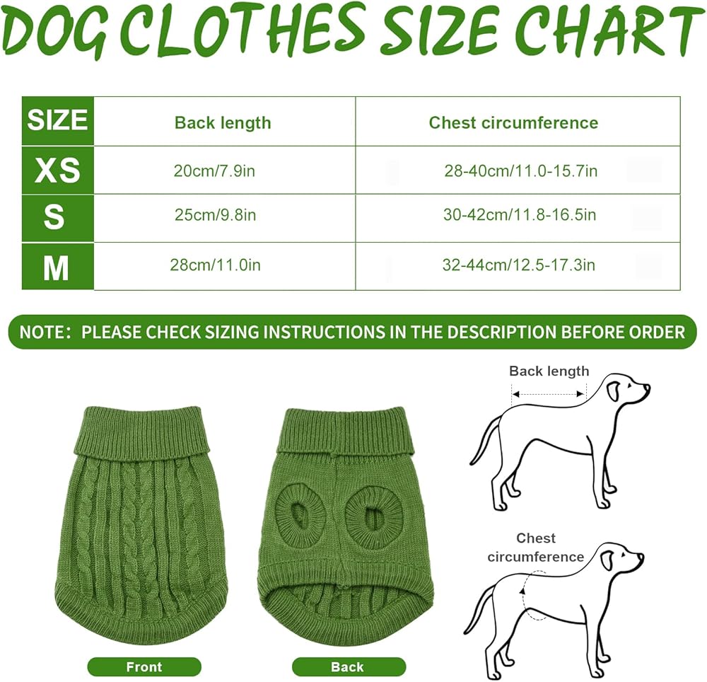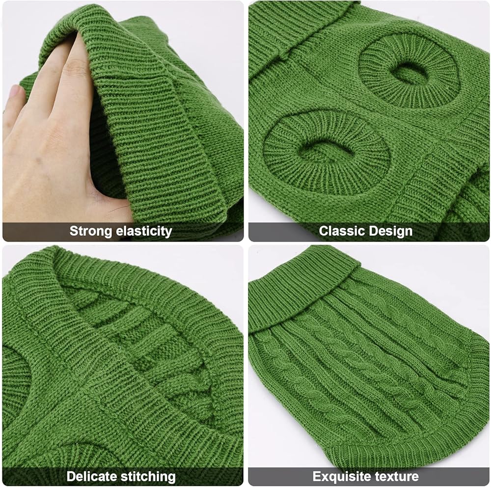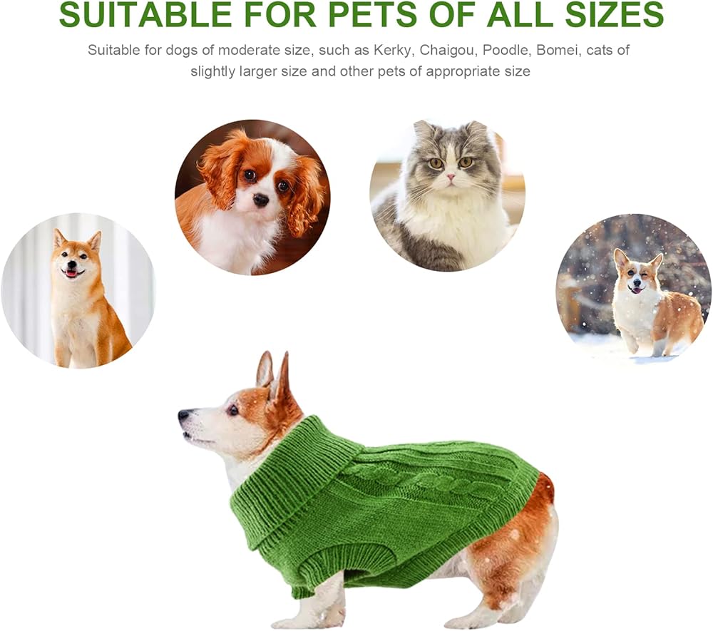 Winter Dog Jumper for Small Medium Dogs, Warm Puppy Pullover Soft Knitted Dog Sweater Elegant Cable Knit Pet Turtleneck Vest for Autumn, Winter Cats, Dogs Clothes, Welsh Corgi, Yorkshire Terrier, Chihuahua, Beagles Outfit (Red/Blue/Green, XS/S/M)