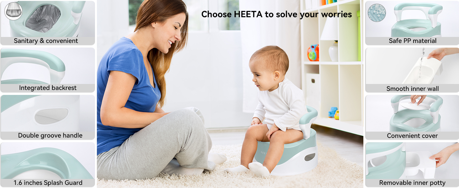 • الأمان والراحة: يتميز مرحاض التدريب على استخدام المرحاض من هيتا بمسند ظهر مرتفع لتوفير أمان إضافي ومساند للذراعين توفر الراحة أثناء عملية التدريب على المرحاض.
