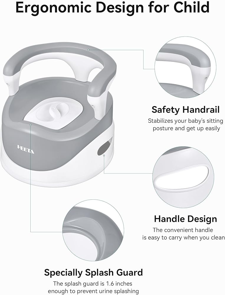 • واقي كبير من الرذاذ: يساعد واقي الرذاذ على تجنب رذاذ الماء أو الحوادث أثناء التدريب على استخدام المرحاض، ويمنع انسكاب البول على الأرض، مما يضمن بقاء حمامك نظيفًا وجافًا.