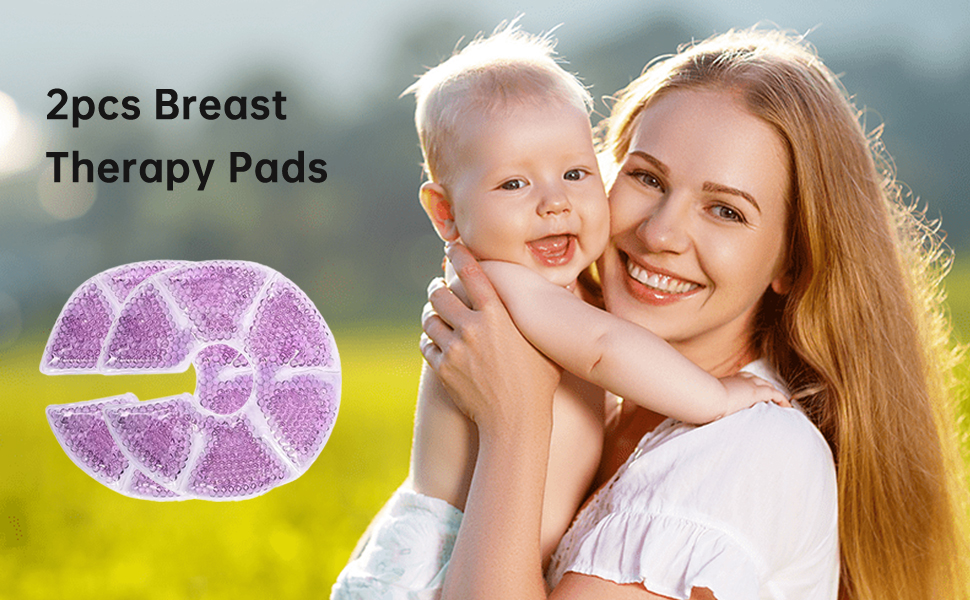 2pcs Breast Therapy Pads, Breast Cold Hot Gel Bead Packs with Nursing Pads and Plush Cloth Cover, Relieve Breast Pain Swelling Boost Milk Production,Reusable Freezable Microwavable ice Pack