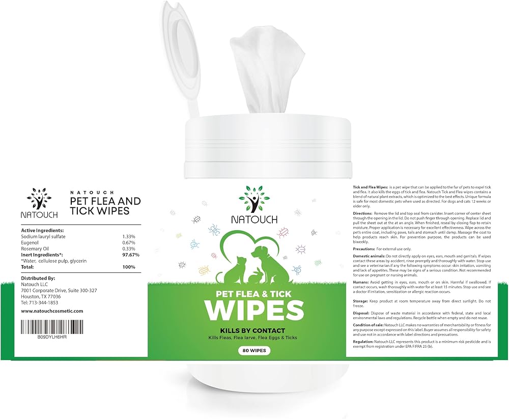 مناديل Natouch للبراغيث والقراد للكلاب والقطط، مناديل لمنع علاج برغوث الكلاب وTIick، جميع مناديل العناية الطبيعية للتنظيف، تساعد في التخلص من القراد والبراغيث والبيض واليرقات، 160 قطعة