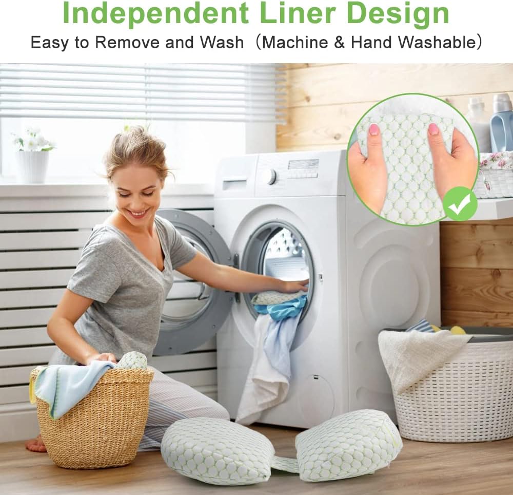 سهل التنظيف والتعديل - غطاء الوسادة قابل للإزالة ويمكن غسله في الغسالة، ويحتوي قلب الوسادة على سحاب غير مرئي لسهولة تعديل الحشو. مع وصلة فيلكرو تسمح لك بضبط المسافة بين الوسائد بمرونة. لذلك، يمكنك العثور على منحنى الاسترخاء المثالي الذي يناسبك ورفض الطي.