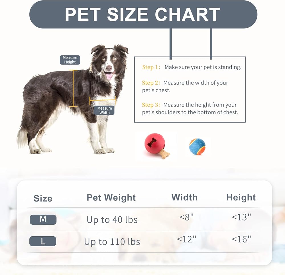 【الأبعاد ونطاقات التمدد】باب الكلب المزود بنفق تلسكوبي مناسب لجدران بسمك 3 9/10-7 7/8 بوصة. حجم الإطار الخارجي L هو 20 1/3 بوصة * 14 1/3 بوصة، فتحة الرفرف 16 1/2 بوصة * 11 بوصة، وهي مناسبة للكلاب التي يقل وزنها عن 110 رطل.