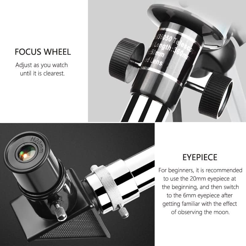 【تكبير عالي الدقة وتركيز يدوي】تكبير عالي الدقة 90 مرة، يمكنك مراقبة الصور السماوية بوضوح؛ عجلة التركيز محفورة بخطوط دقيقة، شعور مريح، أكثر ملاءمة للتعديل أثناء المراقبة