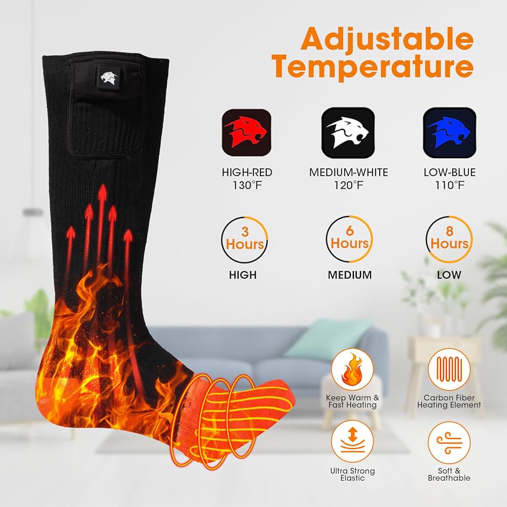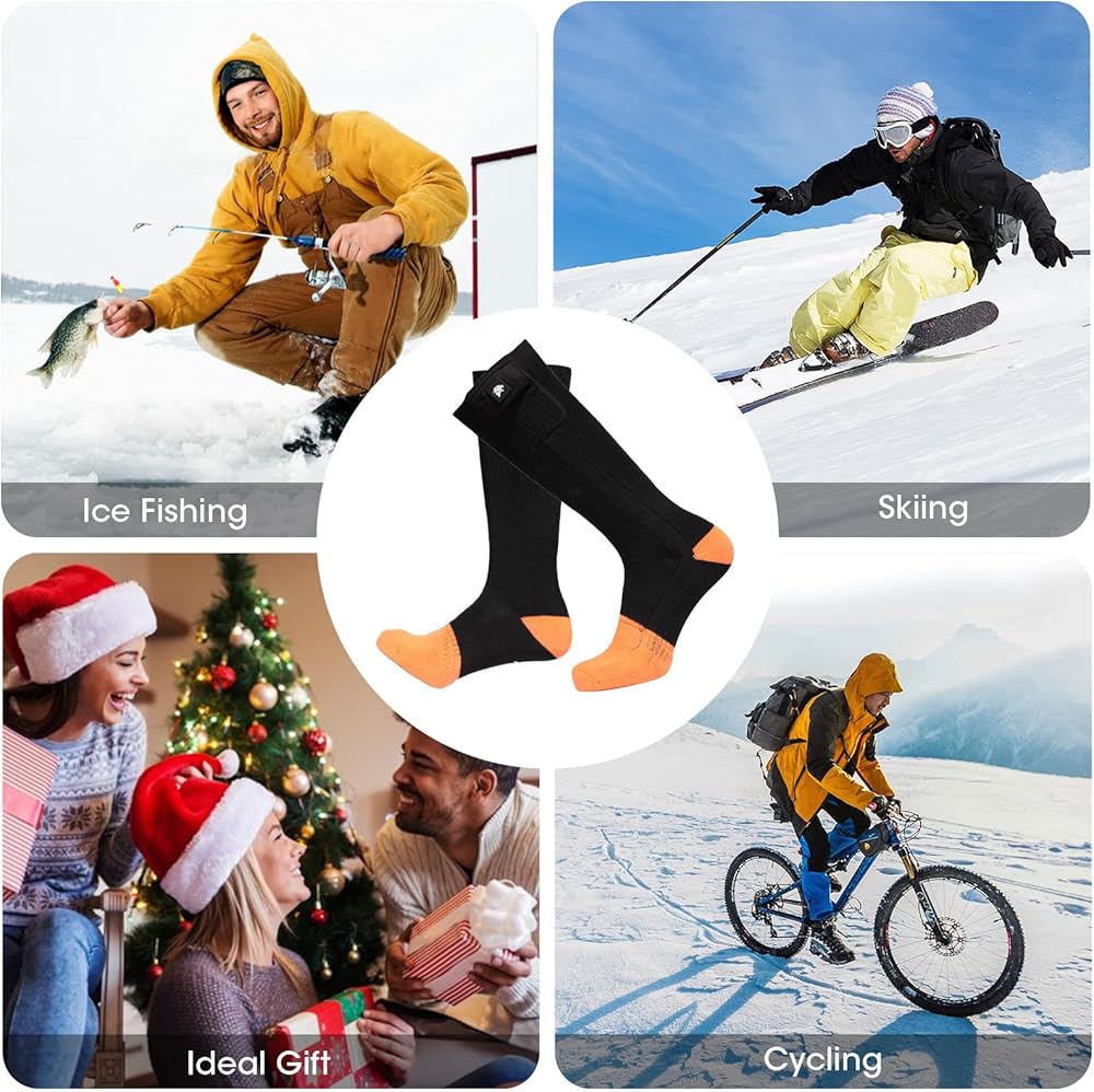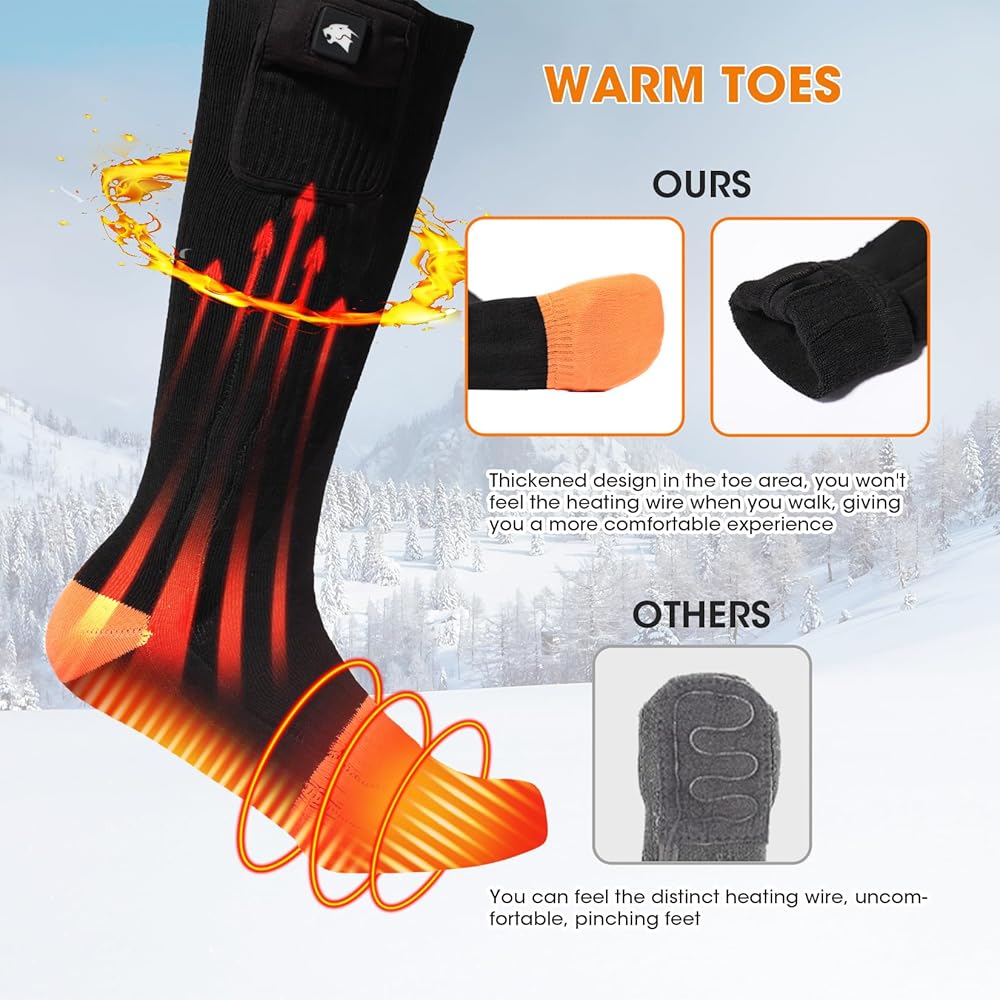 【Advanced Heating Design】: Our electric socks use advanced heating technology of Far-infrared Fiber Heating Elements Covers Instep and Toes Area. Provide consistent warmth to your feet. Say goodbye to cold toes!