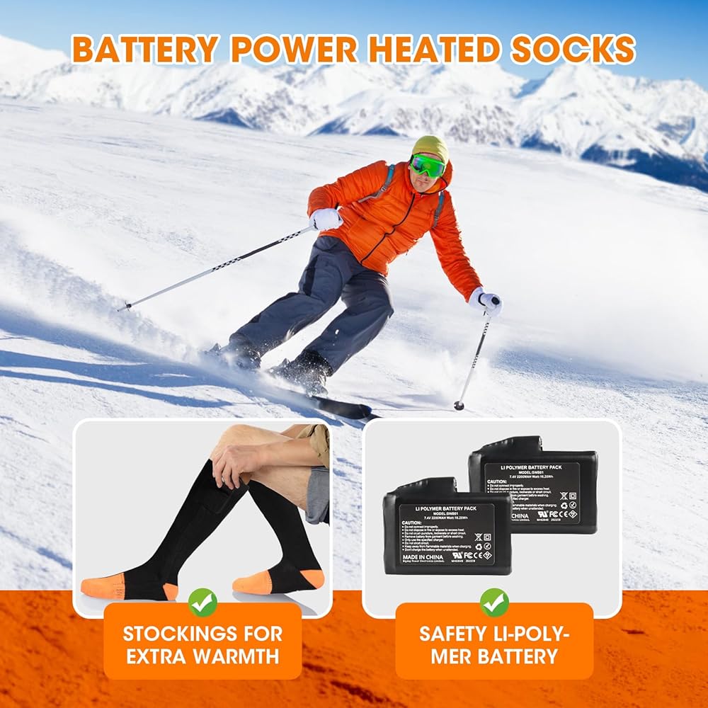 【Soft and Breathable Material】:Crafted from high-quality and breathable fabric, our rechargeable heated socks ensure maximum comfort and moisture-wicking properties. Enjoy dry and cozy feet all day long. The zippered battery pocket can effectively prevent the battery from loosening or falling.