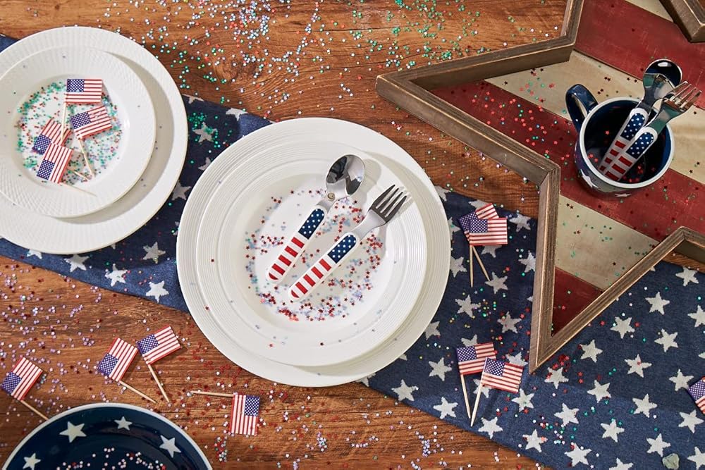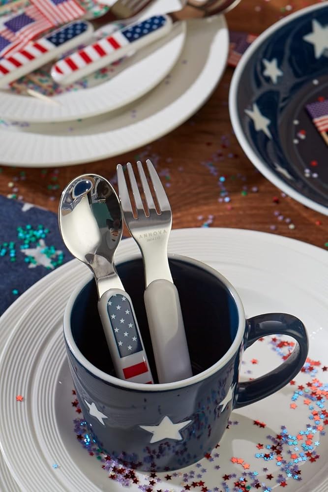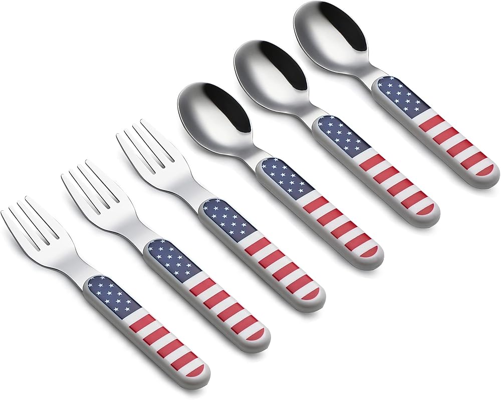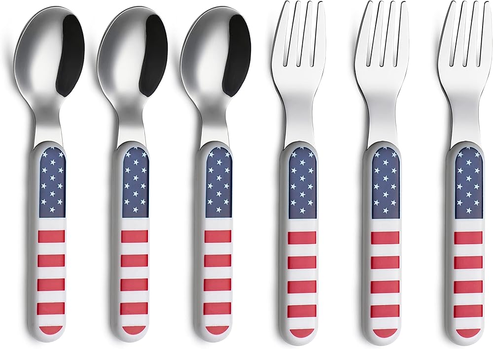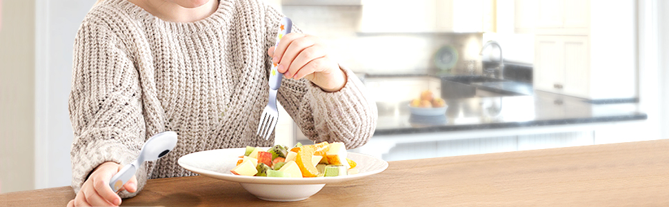 وجبة سعيدة: عند التبديل من الأصابع إلى التغذية بالملعقة، أو تعليم طفلك آداب المائدة، من المهم أن تكون أدوات المائدة التي نستخدمها مثيرة للاهتمام بما يكفي ليسعد الأطفال باستخدامها. شاهدهم وهم يمسكون بملعقة دينو أو شوكة ذات نجوم ملونة، فالملعقة والشوك ذات الزاوية الخاصة تكون سهلة للغاية عندما يحاول الأطفال وضع الطعام في أفواههم.