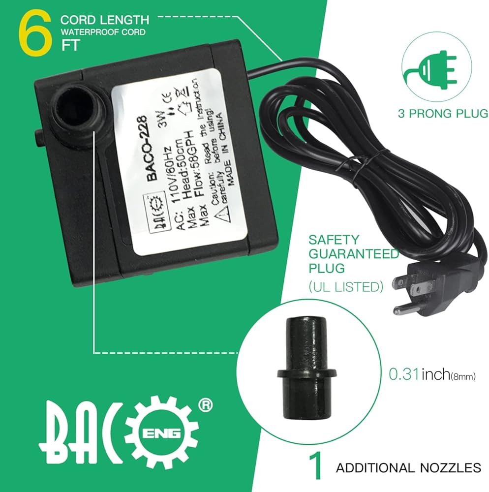 BACOENG مضخة مياه غاطسة نافورة 220L/H 3 واط 58GPH 110 فولت حوض السمك المائية بركة الولايات المتحدة التوصيل