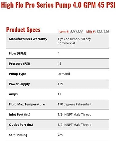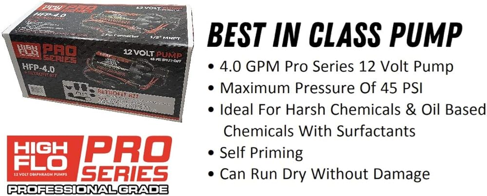 مضخة فيمكو هاي فلو برو سيريز 4.0 جالون في الدقيقة 45 باوند لكل انش مربع 12 فولت. مضخة احترافية مع مطاط صناعي مطور مثالية للاستخدام مع المواد الكيميائية القاسية والمواد الكيميائية الزيتية مع المواد الخافضة للتوتر السطحي