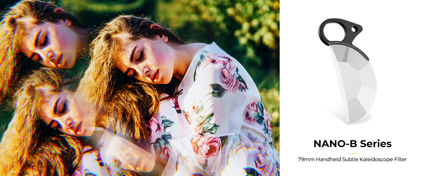 【Prism Effect】Ideal for making real-time adjustments and creating special effects while shooting, the Handheld Half-Circle Kaleidoscope Filter is suitable for scenarios where you need to shoot handheld or track your subject.