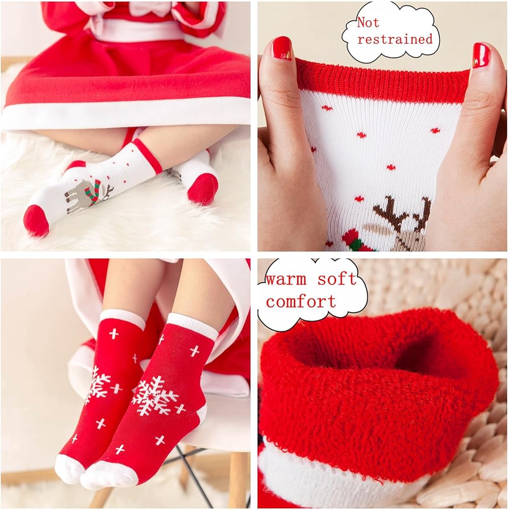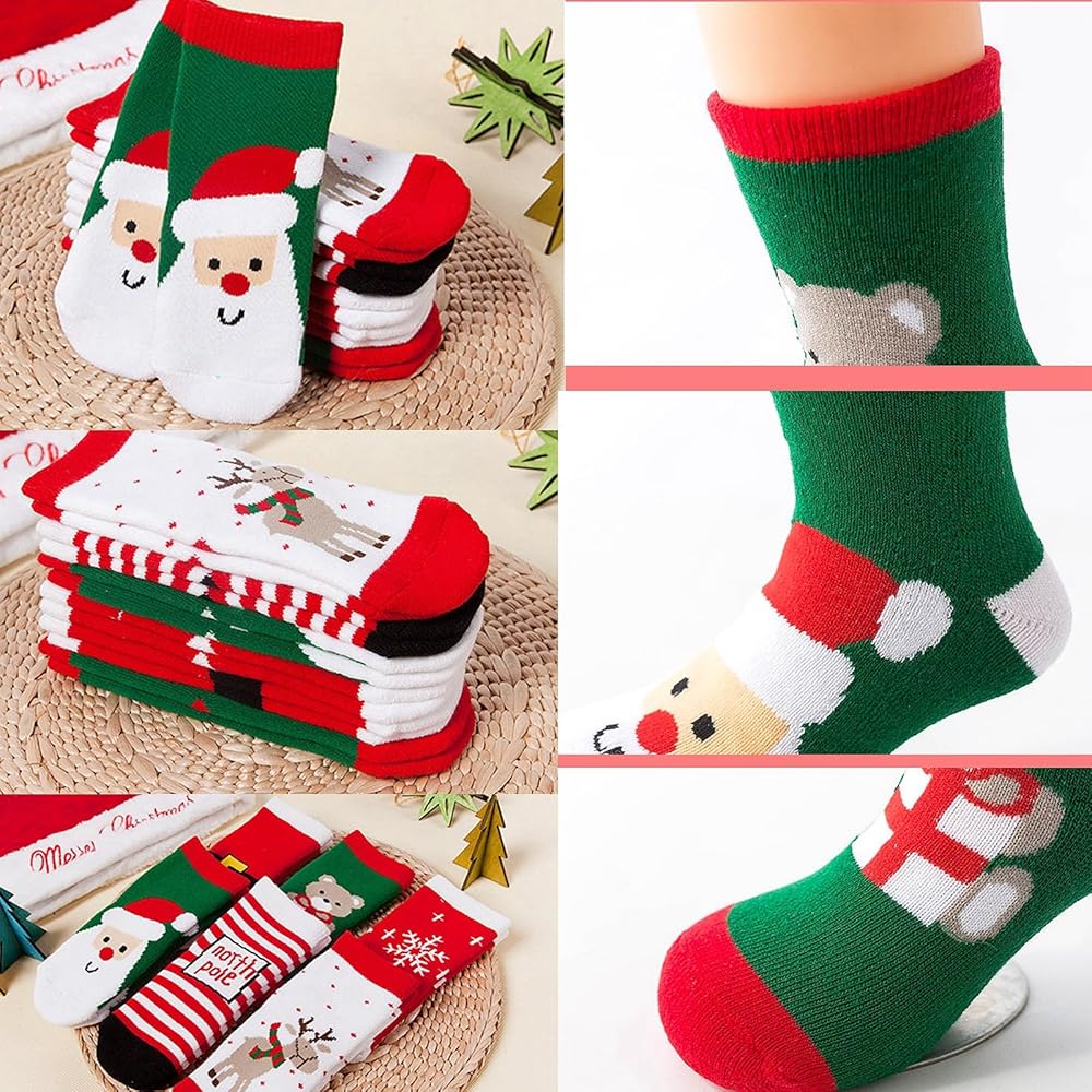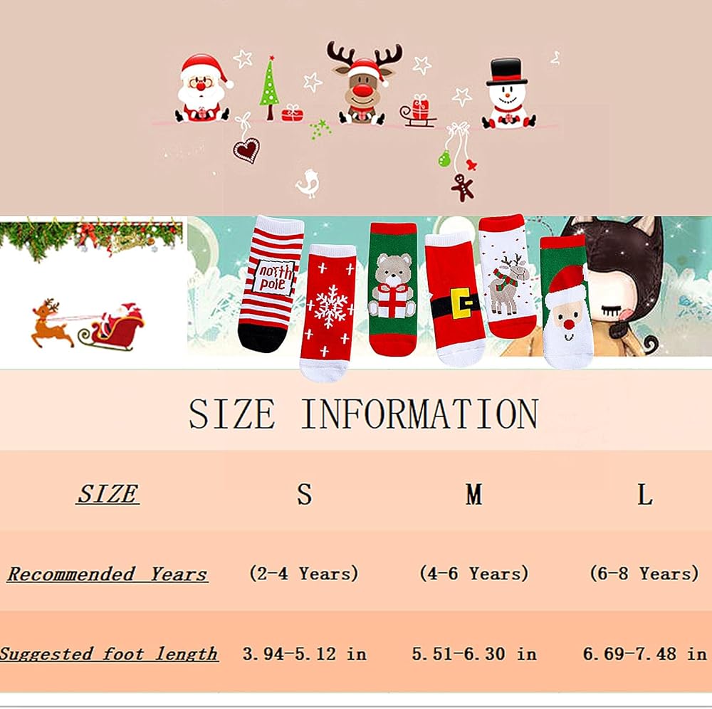 مقاس جوارب العطلات للأطفال: جوارب الأطفال نقدم 3 مقاسات حسب اختيارك، صغير لعمر 1-3 سنوات، متوسط لعمر 4-6 سنوات، كبير لسنوات، كبير للأطفال من سن 6 إلى 8 سنوات. المقاس المناسب تأكد من الأربطة المرنة عند الكاحل لا تضغط على أرجلها مما يمنح الأقدام الصغيرة أفضل تجربة ارتداء مريحة. يحتوي صندوق عيد الميلاد الرائع على 6 أزواج من أنماط مختلفة من جوارب عيد الميلاد للجنسين.