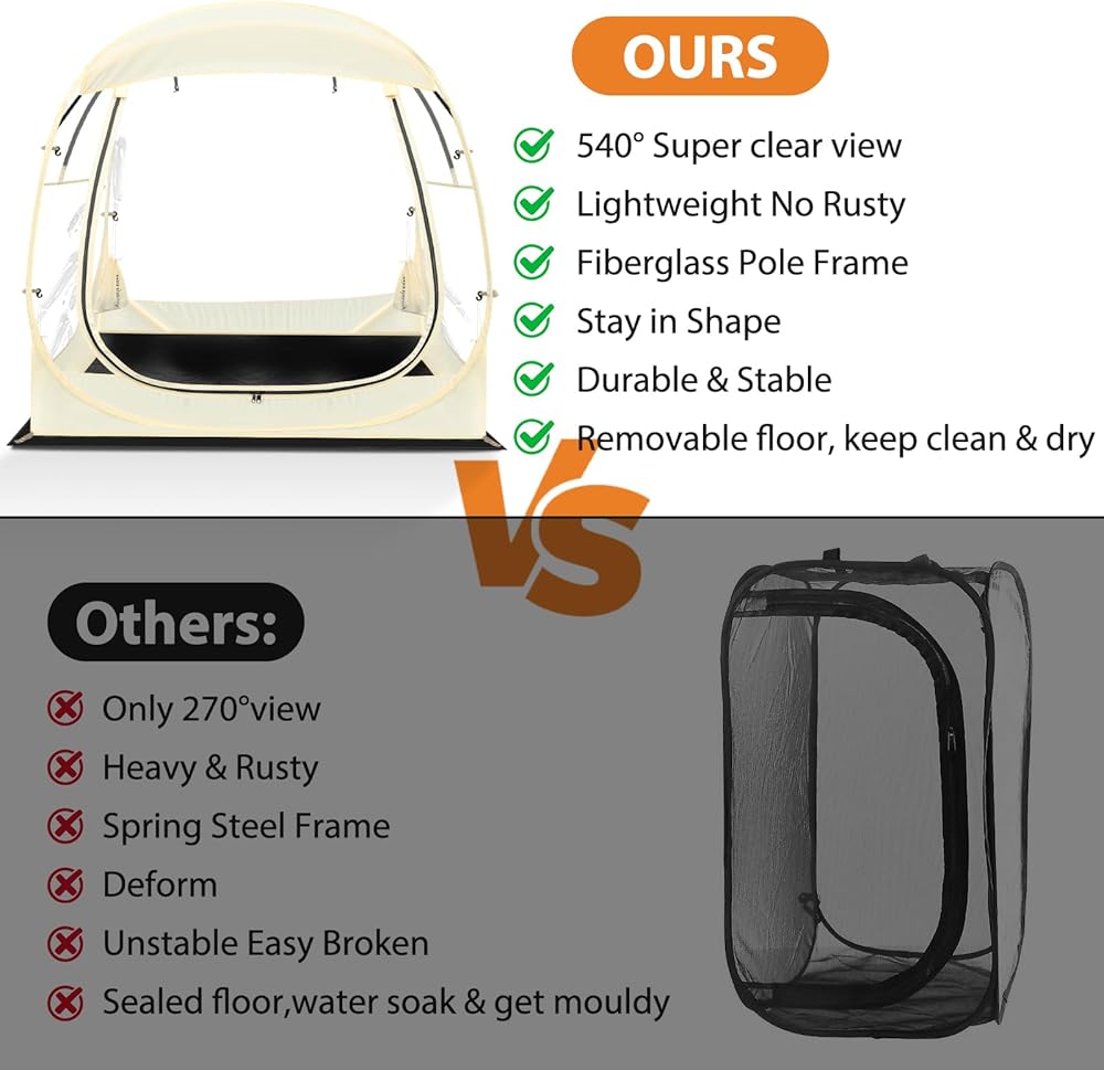 - Spacious and comfortable space: The tent measures width (72") x length 72") x height (65")