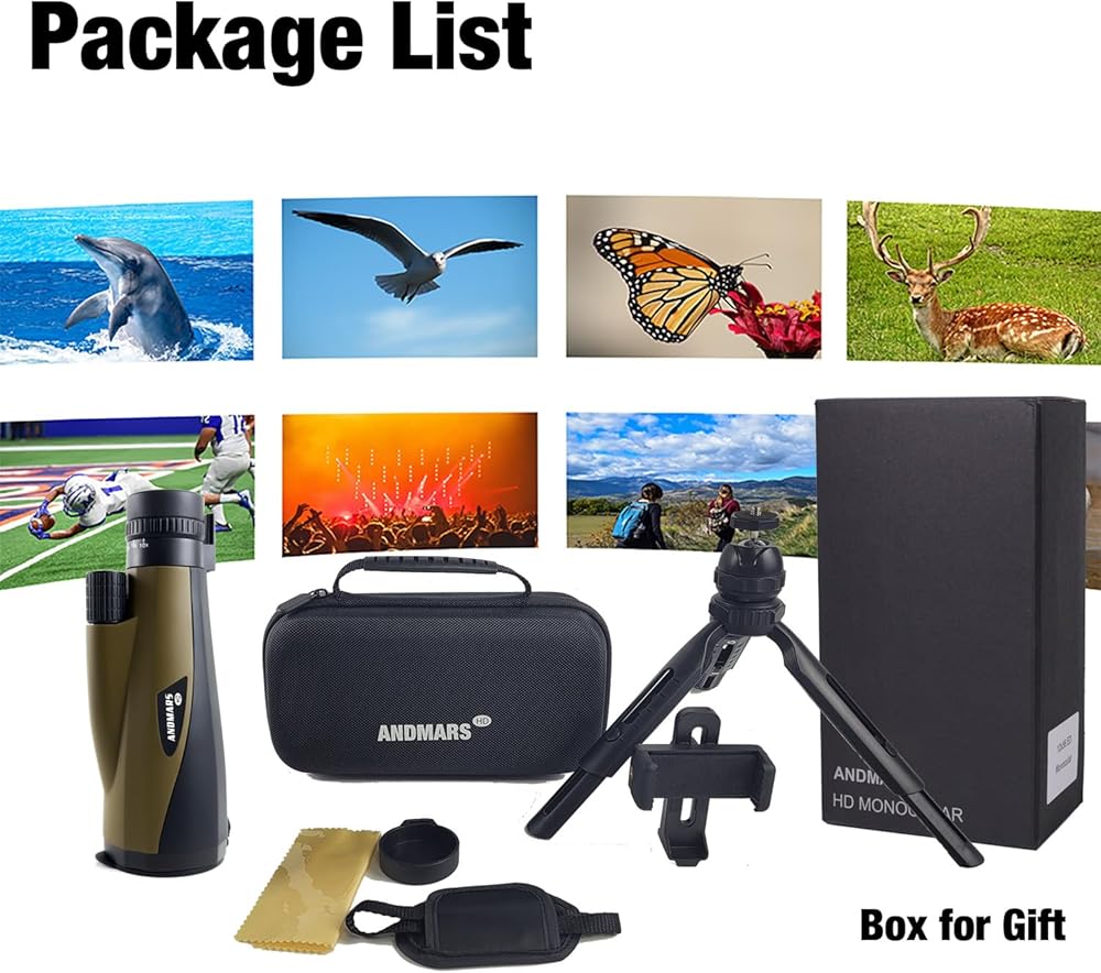 • 【عدسة منشورية BAK-4 ممتازة وعدسة FMC】تم تجهيز التليسكوب أحادي العين بمنشور BAK-4 وعدسة FMC متعددة الطبقات بالكامل، نفاذية ضوء عالية تصل إلى 99.9%، مما يضمن نفاذية الضوء وسطوع ممتازين، ويوفر صورًا واضحة.