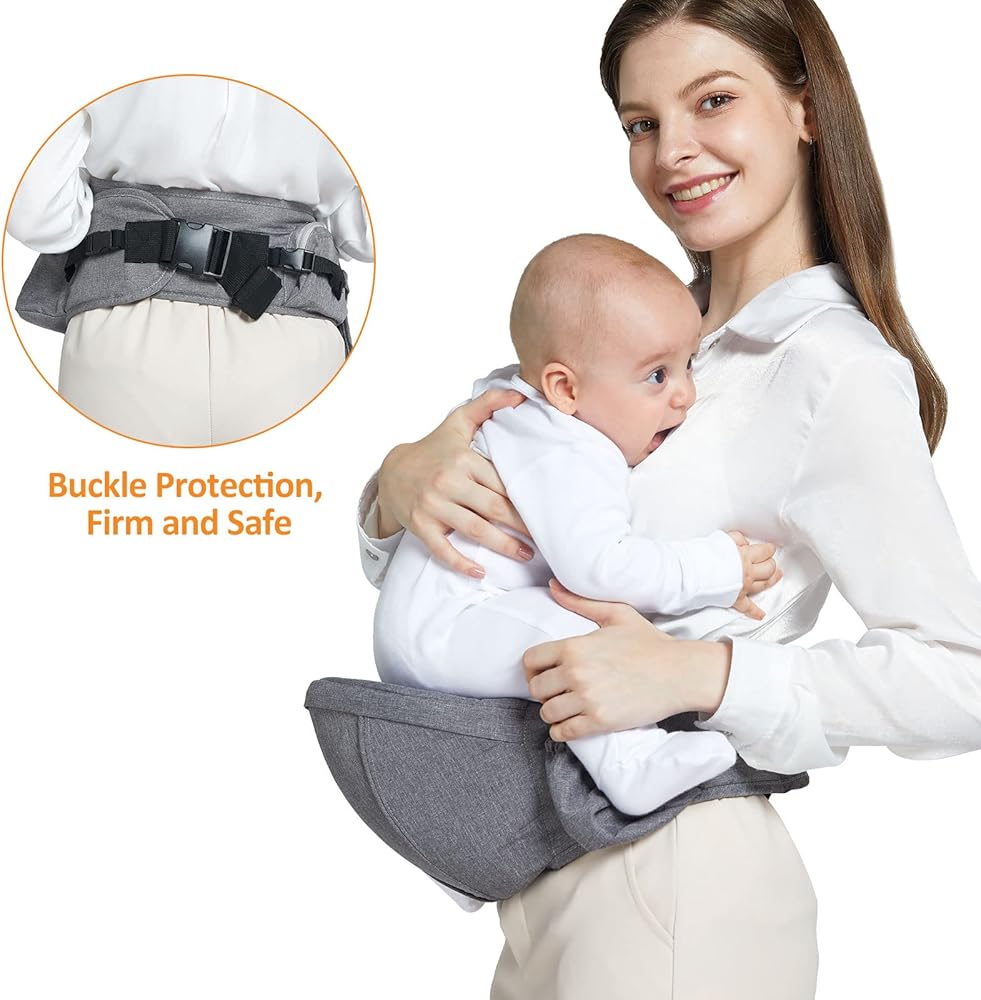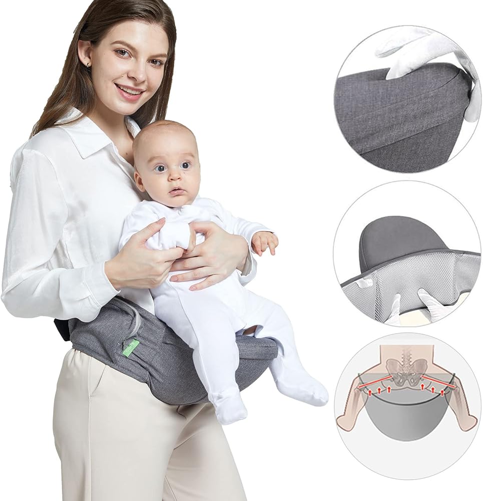 حاملة الورك للأطفال، حاملة الأطفال مع حزام خصر قابل للتعديل، حاملة الورك للأم الطفلة، حاملة مريحة للأطفال، خفيفة الوزن، مقعد الورك للأطفال من عمر 3 إلى 36 شهرًا (رمادي)