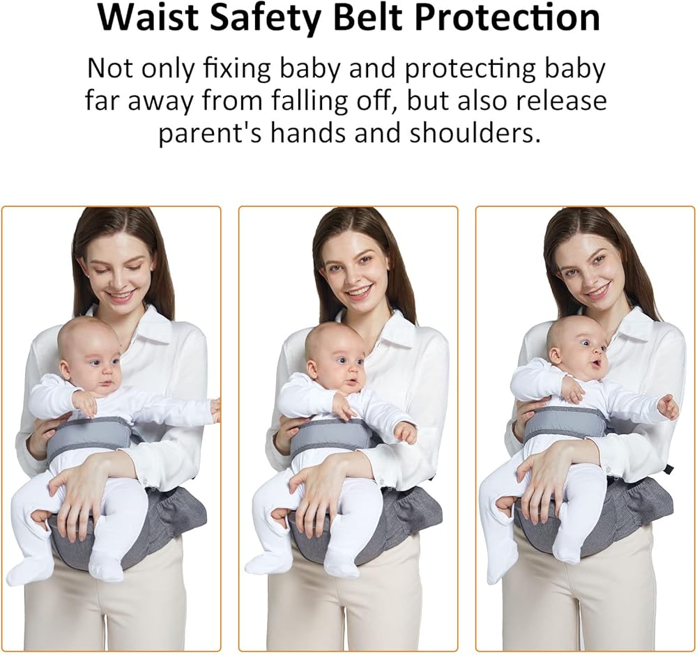【حماية حزام الأمان】: تصميم حماية حزام الأمان هو دعم أمني رائع للأطفال من سن 3 إلى 6 أشهر. حامل مقعد الورك للأطفال مع حزام الأمان من شأنه أن يثبت الأطفال بأمان، مما يوفر الأمان والتثبيت المستقر. كما أن حزام الأمان يحرر يدي الوالدين.