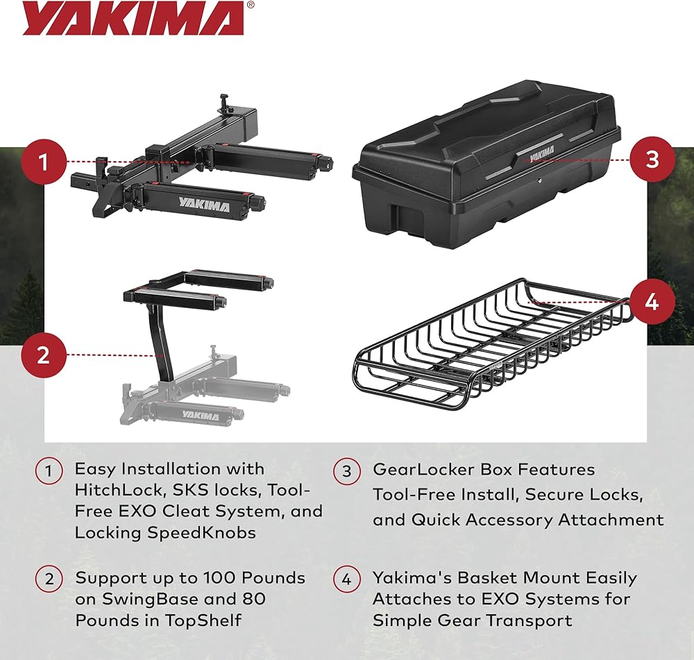 يحافظ على معداتك في متناول اليد؛ هذا النظام المثبت على وصلة الربط يجعل الوصول إلى المعدات أمرًا سهلاً؛ يوفر تصميمه المتأرجح وصولاً سريعًا إلى صندوق سيارتك أيضًا