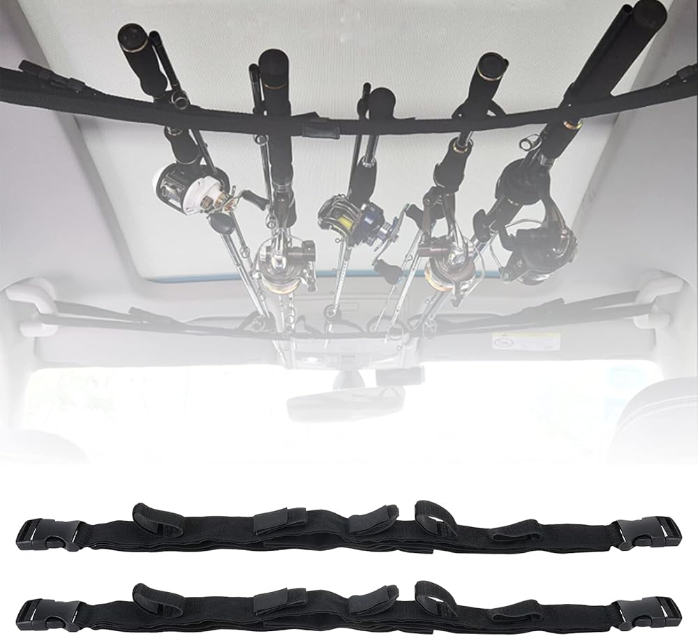【Attention】: The fishing pole rack could hold the rods stably. When you install the rod holders, please make sure to pull the straps as tight as you can. Hold that strap above the buckle, then adjust the length until the rod carrier becomes tight. Make sure that everything is held tightly before driving.