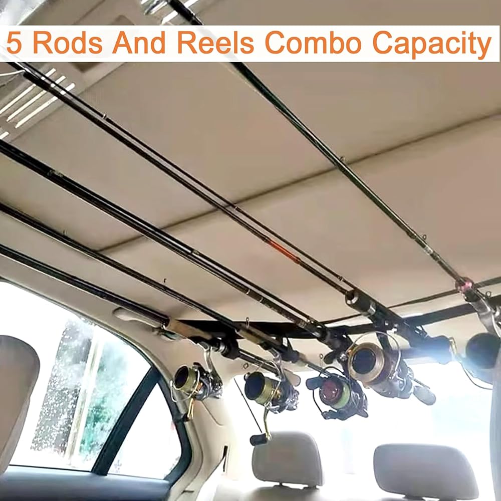 【Save Space】: The fishing rod holders are designed to be suspended on the top of the vehicle and could save a lot of room of the car for a comfortable space. When you When you don't want to use it, it can be folded and placed in the corner of the car, no need to worry about the a mess.