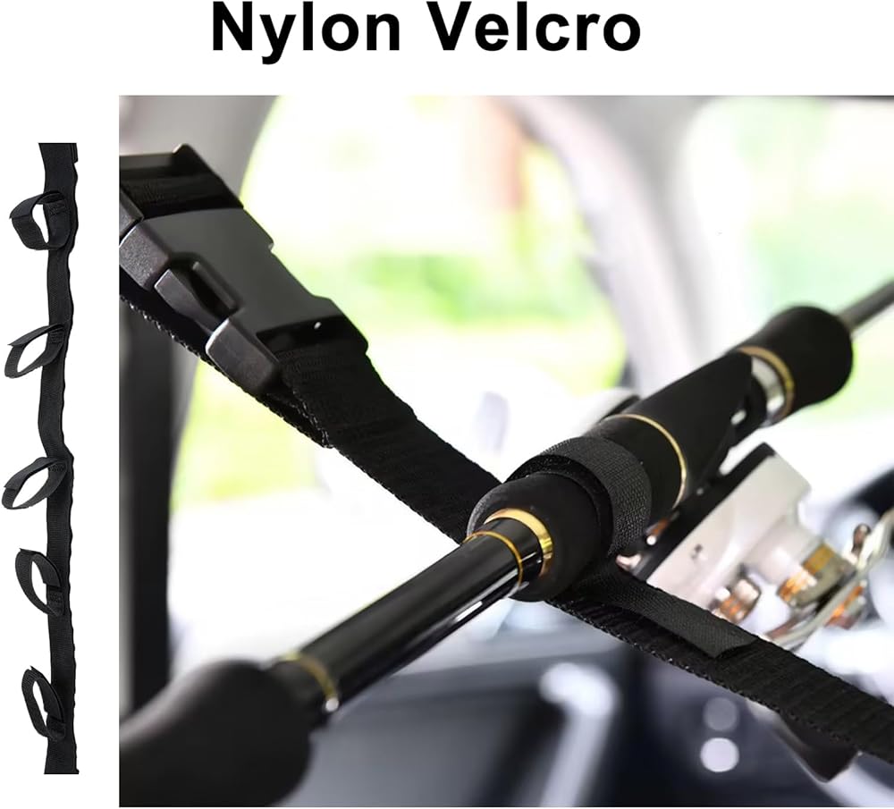 1. The vehicle fishing rod brackets are made of high strength nylon material belt with snap buckle, don't need to worry about the breakage.