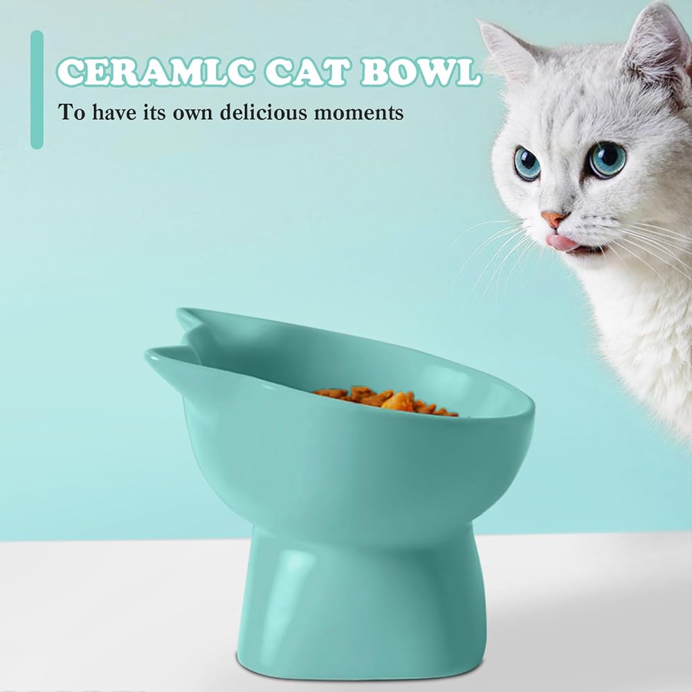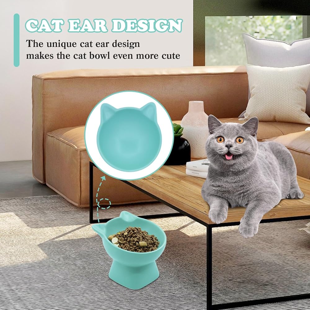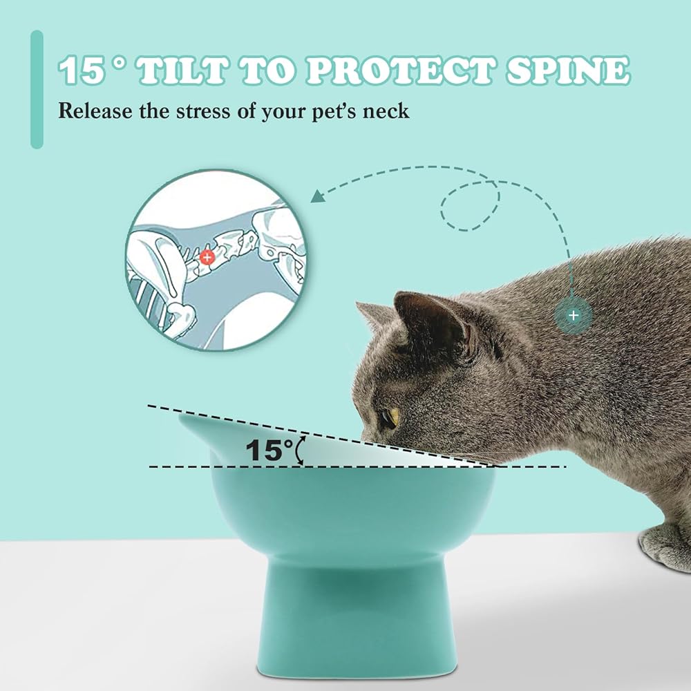 أوعية القطط المرتفعة من السيراميك، وعاء طعام ومياه مرتفع للقطط بزاوية 15 درجة مع حامل لحماية العمود الفقري، وعاء طعام ومياه من السيراميك للقطط والكلاب الصغيرة في الأماكن المغلقة
