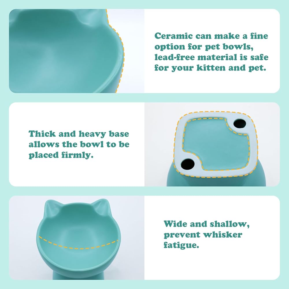 • مادة سيراميك عالية الجودة - وعاء القطط المرتفع مصنوع من السيراميك الصحي عالي الجودة، والذي لن يسبب أي ضرر لحيوانك الأليف، ولا رائحة له وأكثر صحة. وعاء القطط الخزفي يحافظ على قطتك بعيدة عن الذقن السوداء ويمنح قطتك أقصى قدر من الراحة أثناء تناول الطعام.