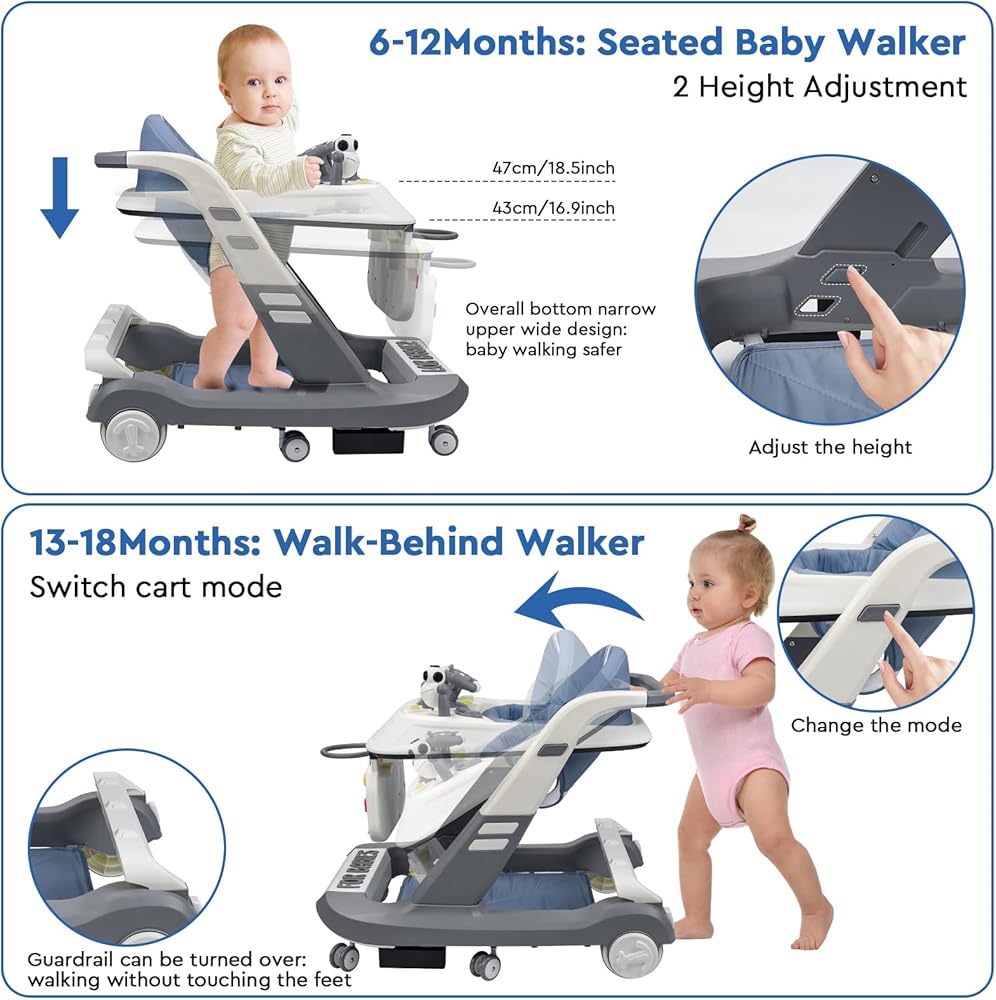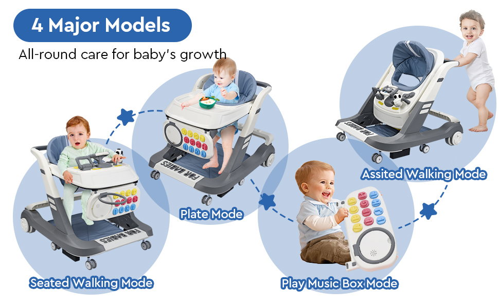 ❤ارتفاع وسرعة قابلان للتعديل: ارتفاعان للمشاية، والتي يمكن أن تلبي احتياجات الأطفال من مختلف الأعمار والأطوال، وتمنع بشكل فعال الحلقة الدائرية. تعمل العجلات الخلفية ذات السرعة القابلة للتعديل على ضبط سرعة المشاية بسهولة لمنع الأطفال من التعرض للخطر بسبب السرعة المفرطة