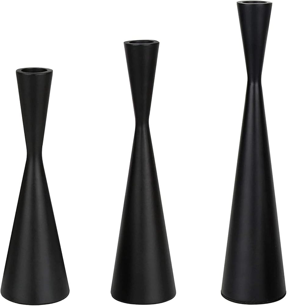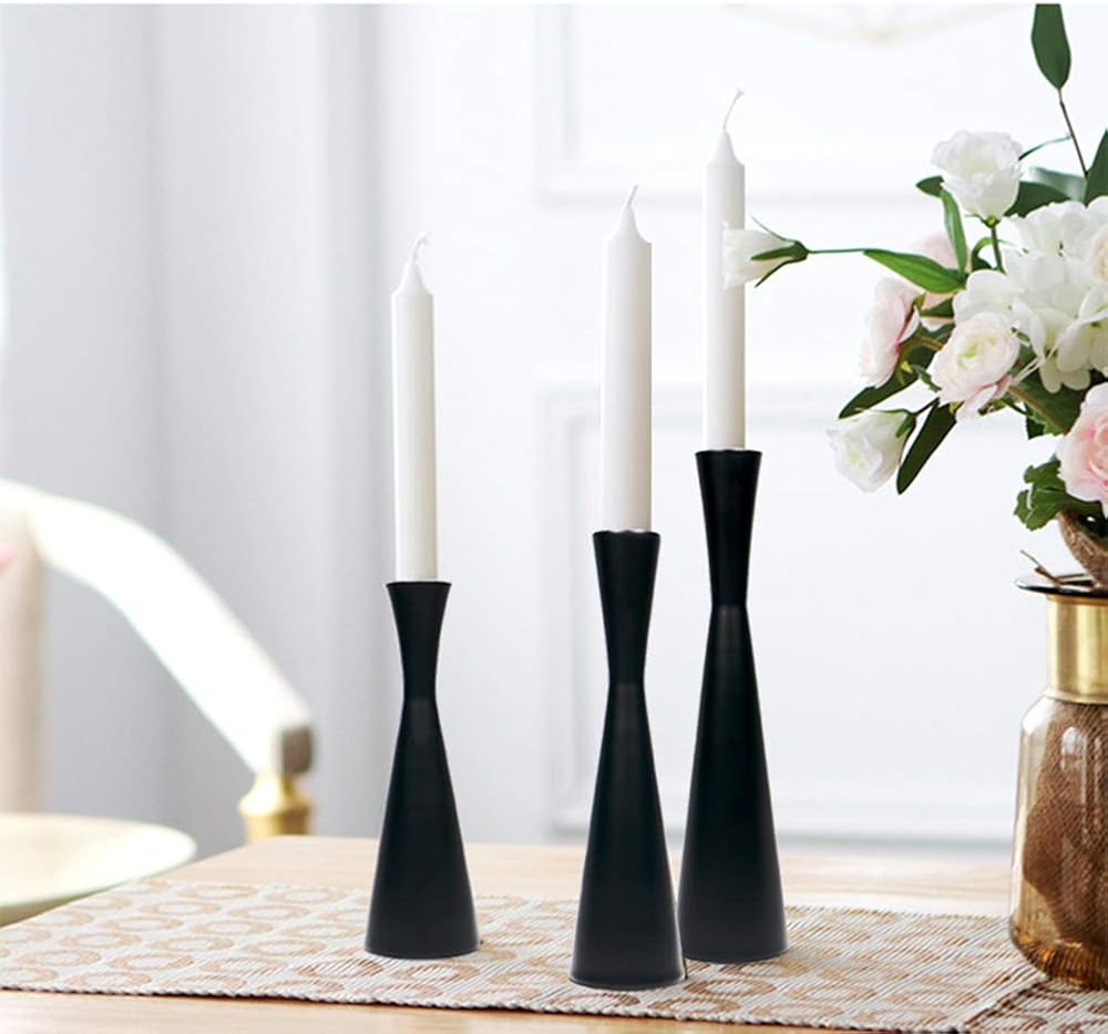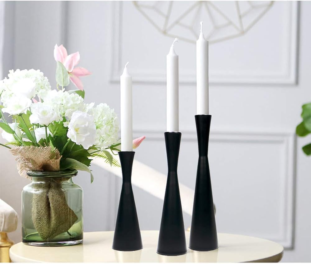 مجموعة من 3 قطع شمعدان معدني بلون اسود غير لامع مع حامل شموع كلاسيكي عصري من منتصف القرن للمنزل والمزرعة والكابينة والطاولة وحفلات الزفاف (S، M، L)