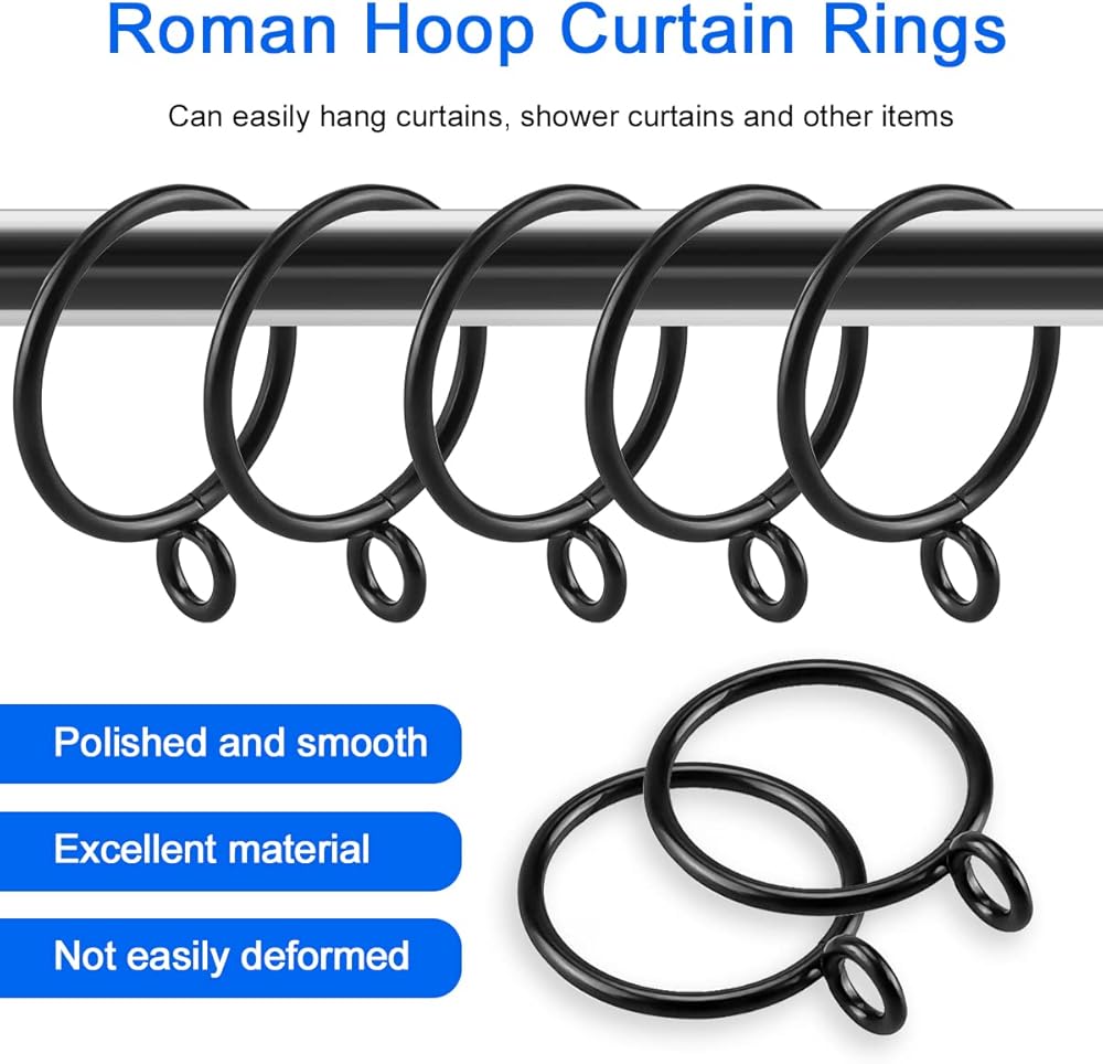 حلقات الستار ، حلقات الستار المعدنية 30 ٪ مع عيلة الستار قضبان قصاصة زخرفة النافذة حلقات العيينة حلقة حلقة الدبابيس للنافذة الحمام المنزل والمطبخ (أسود ، 1 بوصة/25 ملم)