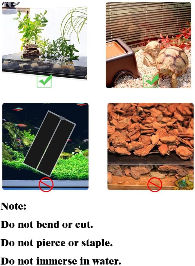 مزود بمقبس أمريكي 2 دبوس وكابل 1.3 متر، لا تغمر حصيرة التسخين في الماء، ويمكن مسح الأوساخ الموجودة على السطح مباشرة بقطعة قماش مبللة. تم تصميم حصيرة التسخين البطيئة للزواحف لمنع ارتفاع درجة الحرارة، ويستغرق التسخين بشكل صحيح حوالي نصف ساعة. نقترح وضع وسادة الحرارة الخاصة بالزواحف في الجزء السفلي أو الجانبي من حوض السمك أو الحوض الخاص بك.