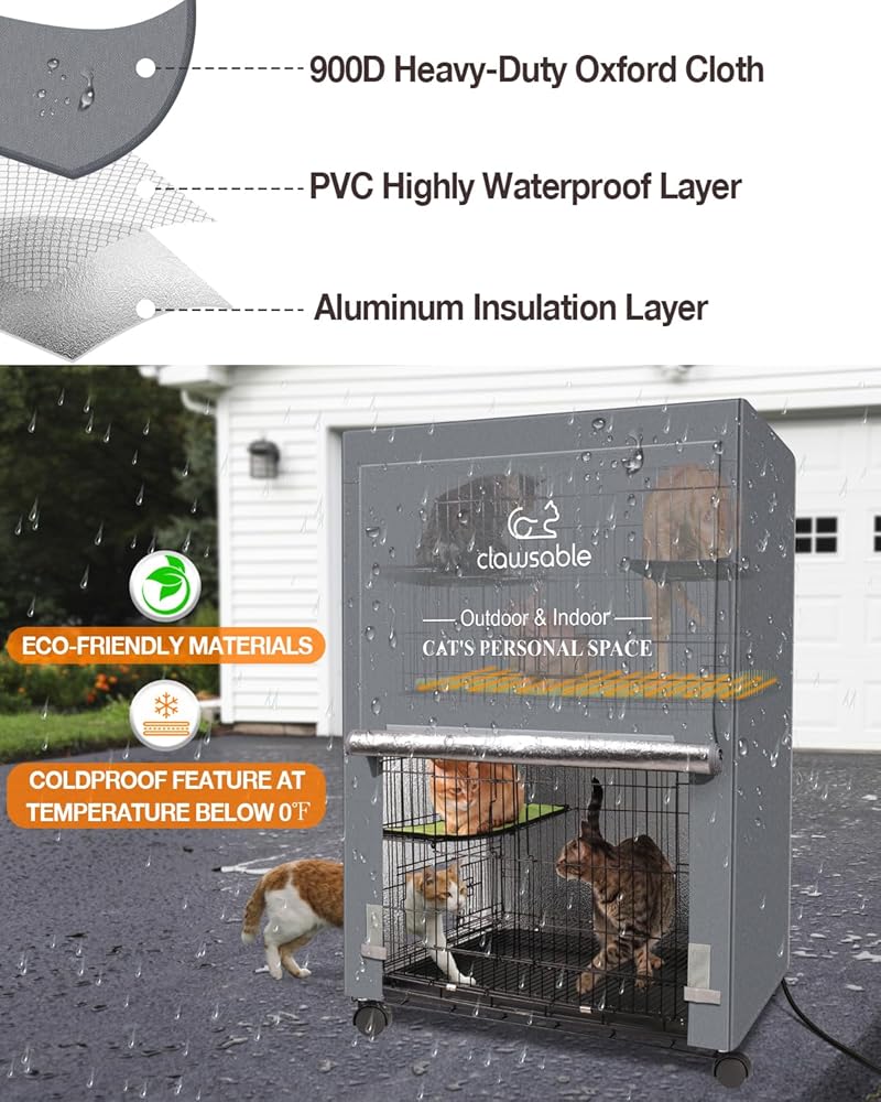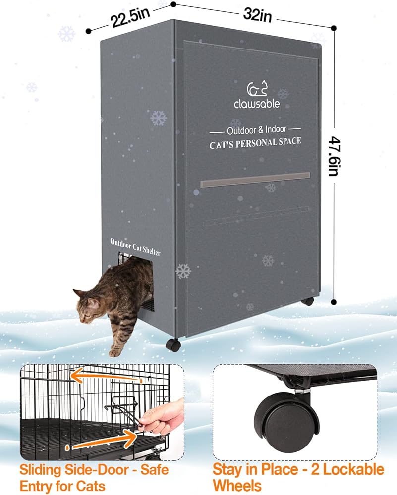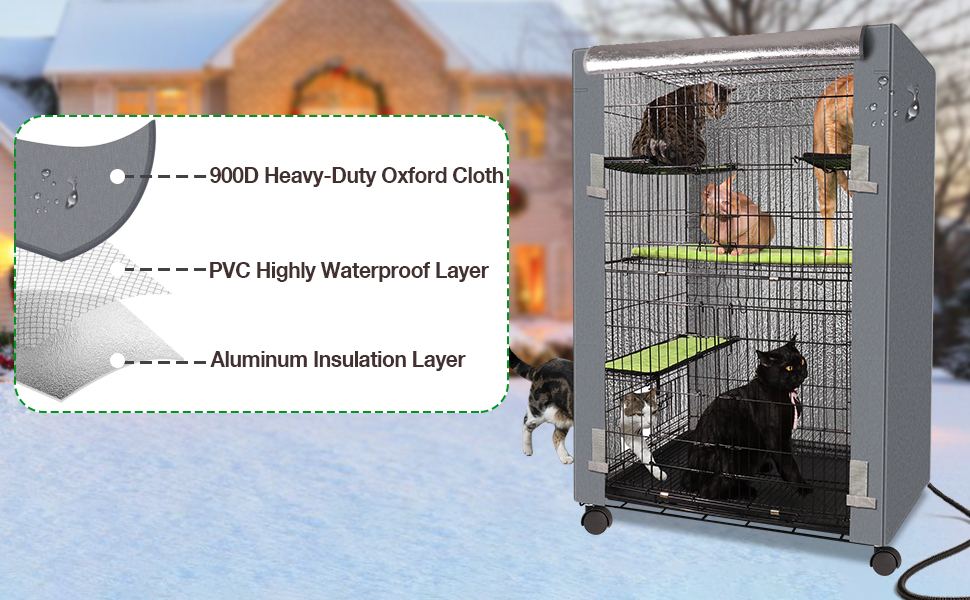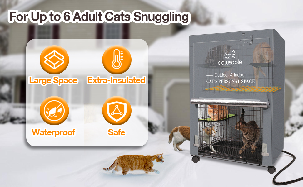 مصمم للاستخدام الداخلي والخارجي مع وضع القطط في الاعتبار - هذا الهيكل متعدد الاستخدامات مثالي لكل من الإعدادات الداخلية والخارجية، مما يضمن ملاذًا واسعًا ودافئًا لرفاقك القطط المحبوبين، حتى في أبرد الشتاء. تأتي مجهزة بأربع عجلات قابلة للإزالة، مما يسمح بسهولة الحركة من الداخل إلى الخارج. بالإضافة إلى ذلك، يوفر الغطاء المدمج المقاوم للماء العزل والدروع ضد الرياح ويوفر مقاومة للمطر والثلج.