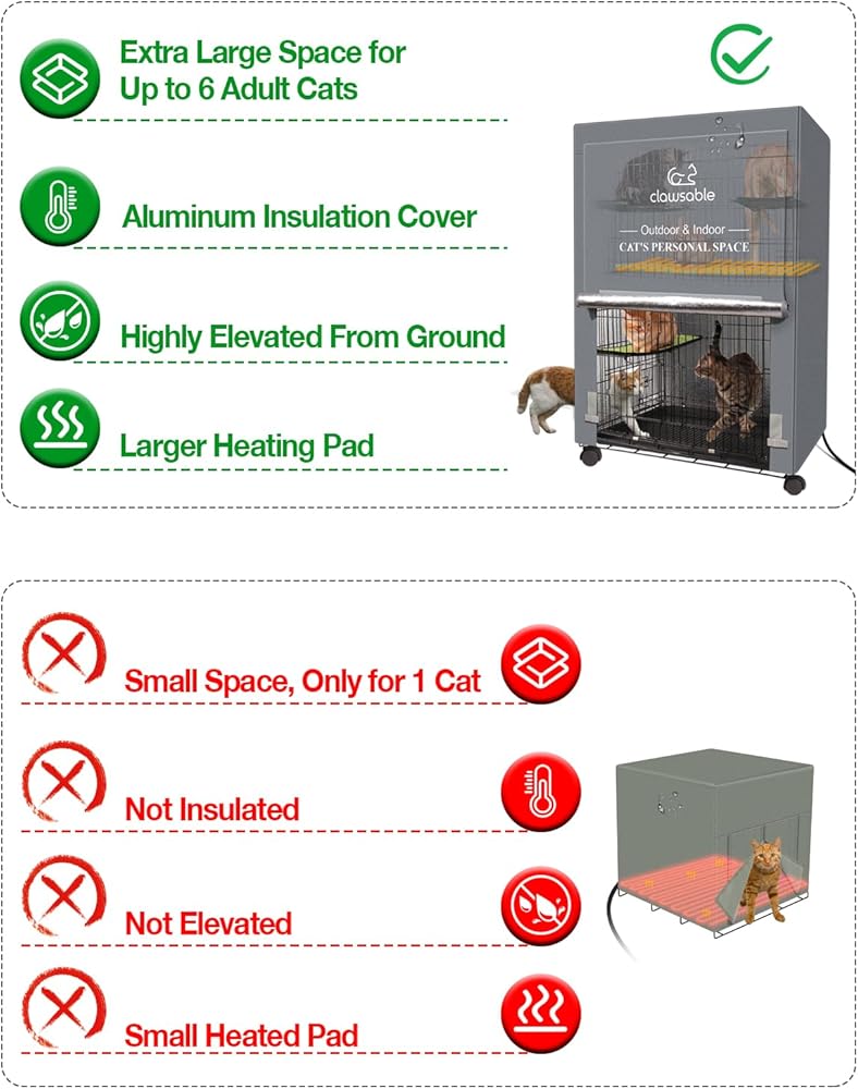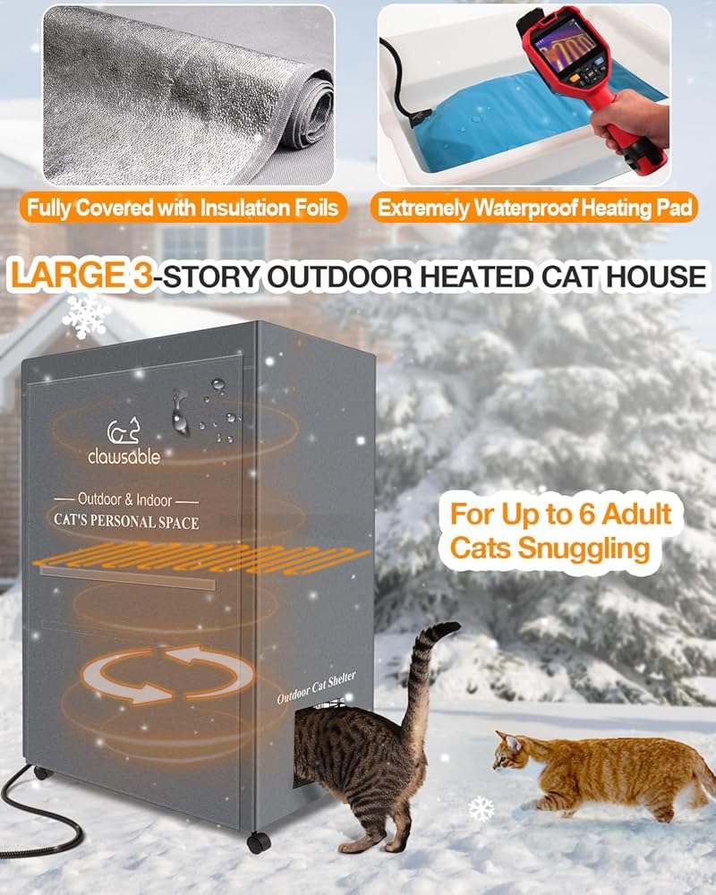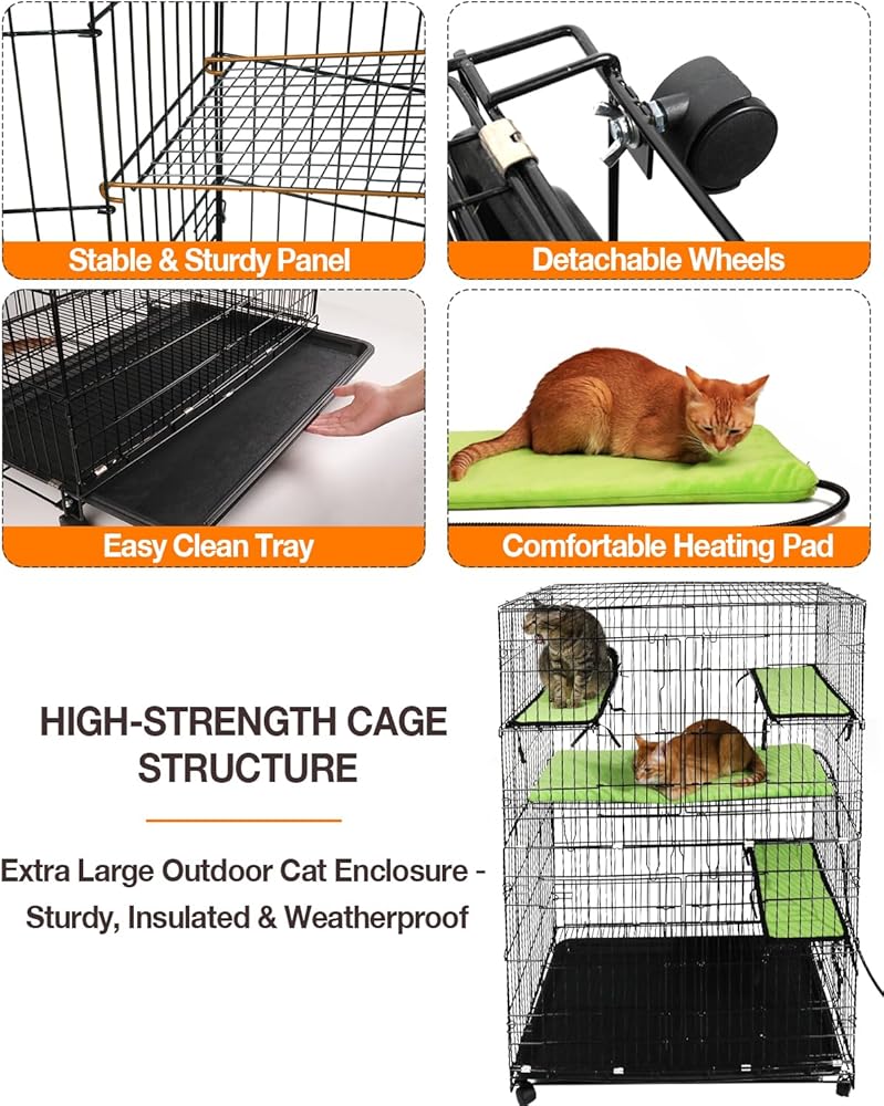 مساحة كبيرة قابلة للتوسيع لمحبي القطط متعددة الأغراض - توفر ملاذ القطط هذا ثلاثة مستويات من المساحة، مثالية لاستيعاب قططك على الشرفة أو الفناء أو الشرفة أو في المرآب. المستوى الأول مخصص لصندوق القمامة والطعام، والمستوى الثاني يتميز بوسادة تسخين كبيرة الحجم لمزيد من الدفء، والمستوى الثالث يوفر مساحة لعب واسعة على كلا الجانبين.