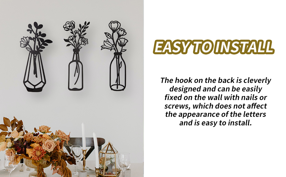 • سهلة التعليق، ما عليك سوى تثبيت مسمار على الحائط حيث تريد عرضه، ثم قم بتعليق زينة الزهور المعدنية على الظهر من خلال الخطاف الموجود في الخلف. لا حاجة إلى صمغ أو حبل إضافي لتثبيته، ولا حاجة للتجميع. يمكنك استخدامه عند الحصول عليه. لن تسقط بسهولة، وستجذب دائمًا عائلتك وأصدقائك، وتضيء منزلك