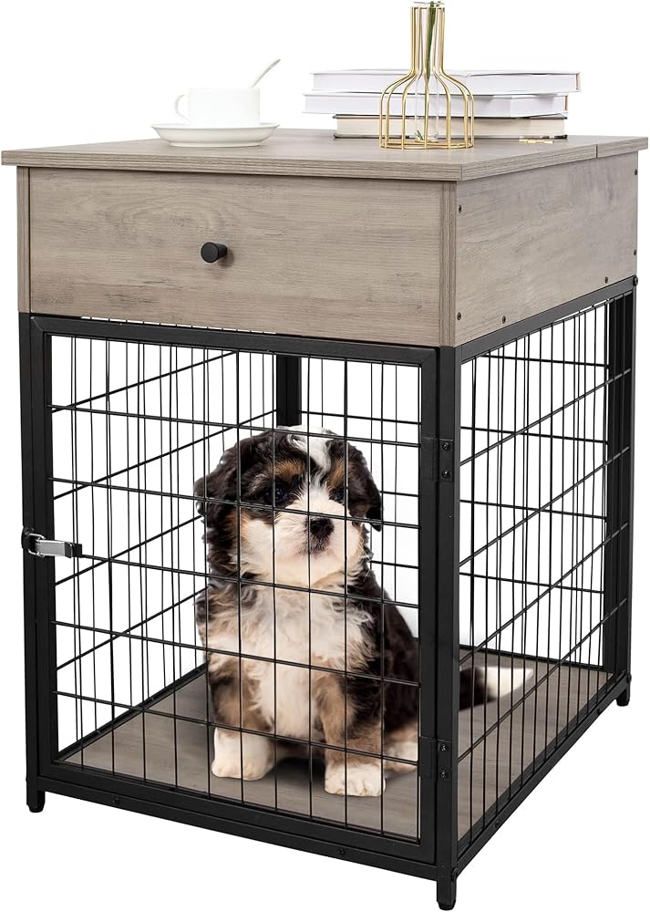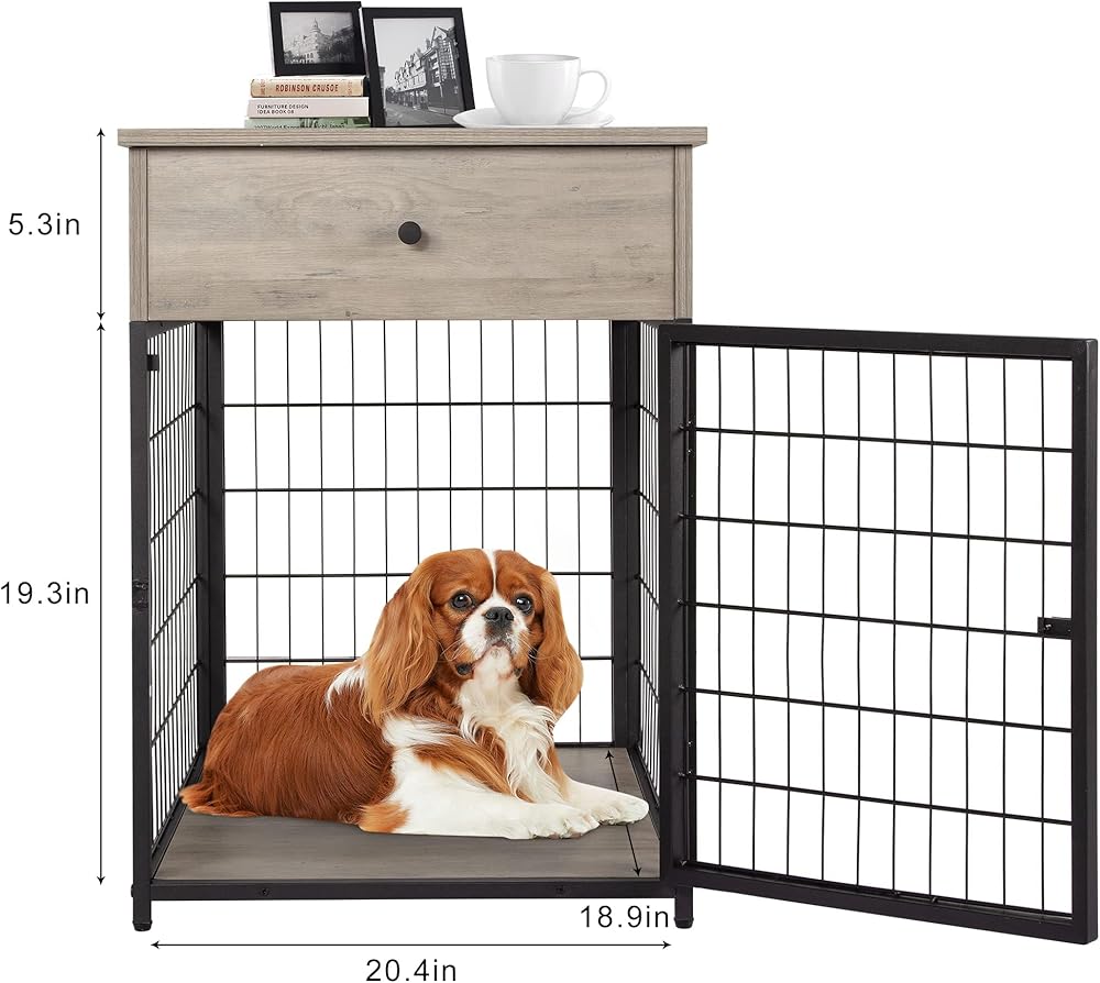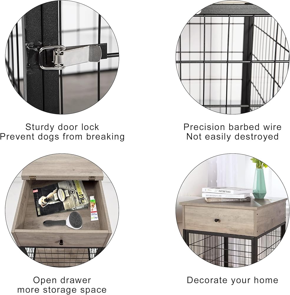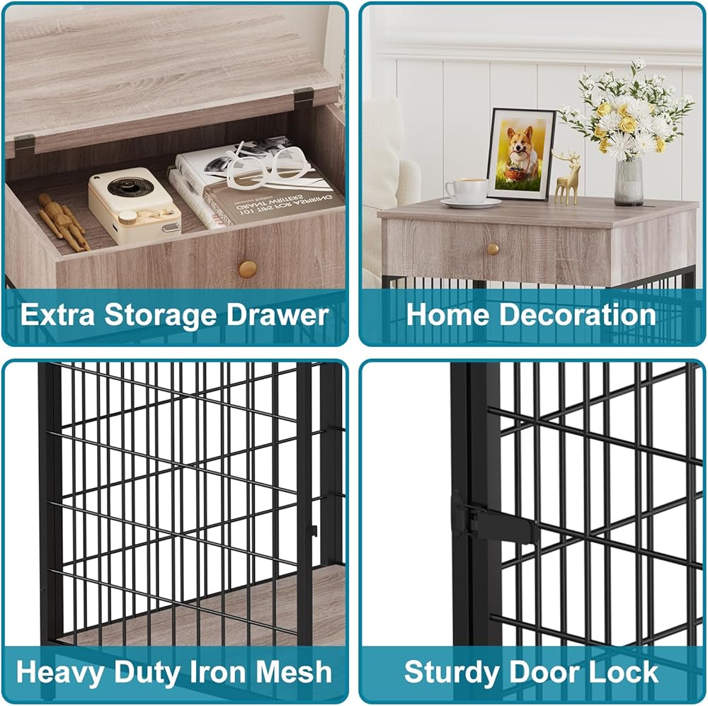 متعددة الوظائف: توفر ملاذاً آمنًا لكلبك، وتعمل كطاولة جانبية أو منضدة لك. أدراج لسهولة التخزين. يوفر السطح الواسع مكانًا كافيًا لوضع بعض الزخارف مثل النباتات الصغيرة/المتوسطة والمجلات وإطارات الصور العائلية والمصابيح الليلية وما إلى ذلك.