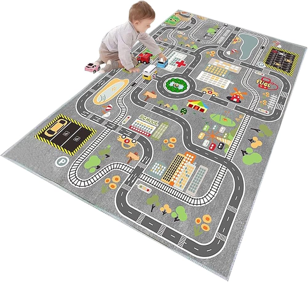 【سجادة تعلم الأطفال】: سجادة طريق المرور مطبوعة بمباني ومشاهد مختلفة، بما في ذلك الطريق/الشارع والمباني والمدرسة ومواقف السيارات والسيارات وأكثر من ذلك بكثير. دع طفلك يتعلم من خلال وقت اللعب، ويلهم فضول قلب طفلك و تعزيز التعليم المبكر.