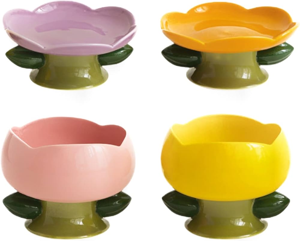 • Capacity: We have 2 styles of flower ceramic raised cat bowls, the large flower bowl has an extra large capacity of 22.3 oz and is great for both pet dry food and water; the smaller flower bowl is better suitable for snacks and wet food(at the picture shows).